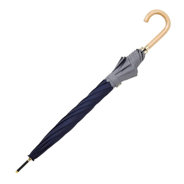 傘のデザインに調和する合板製のハンドルは、手にしっとりと馴染み、上質な質感を楽しめます。