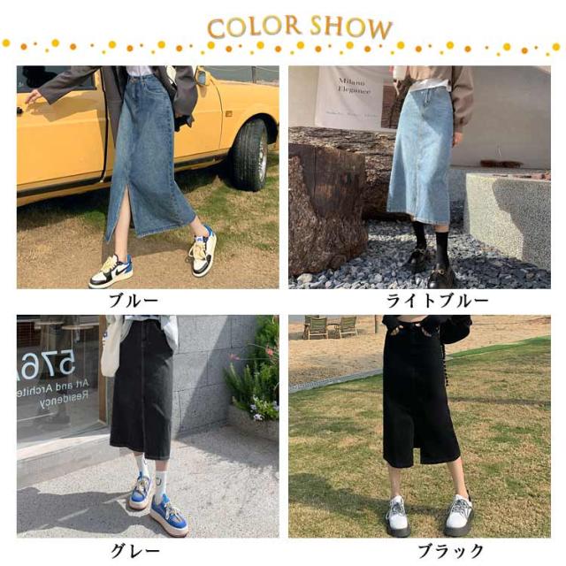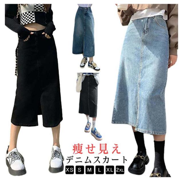 デニムスカート レディース 春夏 スリット デニム タイトスカート ボトムス ボタン付き かわいい カジュアル 痩せ見え 可愛い 無地 シンプル きれいめ 普段着 通勤 おしゃれ Aライン OL スカート シンプル ハイウエスト 大きいサイズ 春 夏 膝下丈