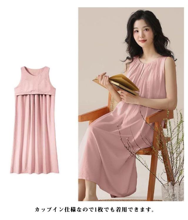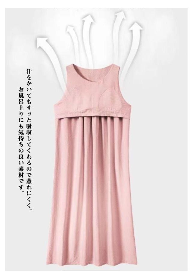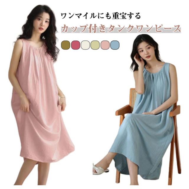 タンクトップ カップ付き ルームワンピース 部屋着 膝下 ブラカップ付きワンピース キャミワンピ Aライン ルームウェア ネグリジェ インナー ワンピース パジャマ 外出 おしゃれ ブラカップ付きワンピース 寝間着 薄手 涼しい 無地 楽ちん 大人