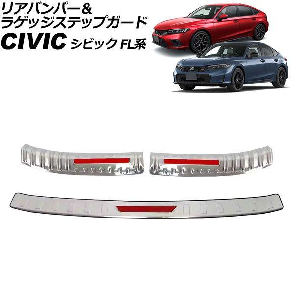 リアバンパー&ラゲッジステップガード ホンダ シビック FL系 2021年09月〜 シルバー×レッド ステンレス製 入数:1セット(3個) AP-SG394-SIRD