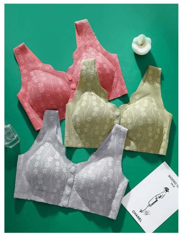 | 3枚セット!シームレス&ノンワイヤーで辛い術後にもやさしい着け心地! シームレス&ノンワイヤー!前開きブラジャー。 前開きらくらく、背中に手をまわす必要がないので、簡単にブラジャーを外すことができます。 幅広ストラップ肩が痛くなりにくい。 のびのびストレッチでよく伸びて柔らかくフィット!締め付け感がなく優しい着心地! かわいい花柄、着心地がよくお肌にもやさしい。 | |