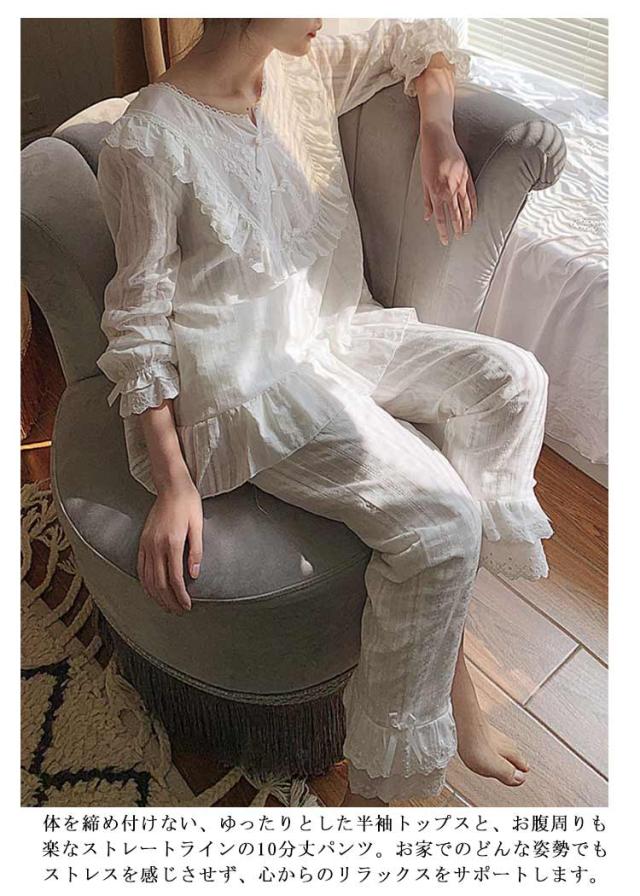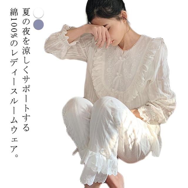 パジャマ レディース 夏用 ルームウェア 夏 無地 シンプル フレア 綿 姫系 セットアップ 春 秋 長袖トップス 韓国 かわいい コットン 可愛い 上下セット 10分丈 大人 半袖 綿100 春秋 ロングパンツ おしゃれ 部屋着 レディース スウェット 寝巻き 大きいサイズ