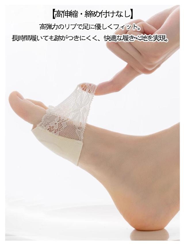 トングタイプ 靴下 くつ下 3足セット レディース 花柄レース メッシュ クッション付き サンダルソックス トング靴下 シースルー 脱げない 靴ずれ防止 フリーサイズ ブラック ホワイト ベージュ カーキ