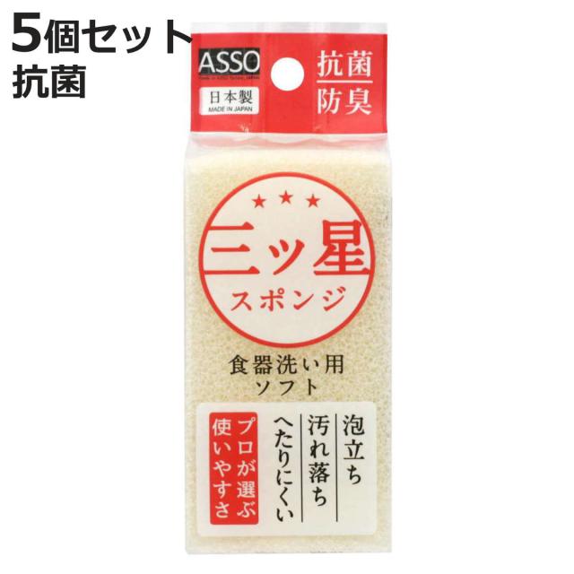キッチンスポンジ ASSO 三ツ星スポンジ 食器洗い用 ソフトホワイト 5個セット ( スポンジ 抗菌 防臭 キッチンクリーナー 日本製 食器洗い 長持ち 丈夫 食器用スポンジ 食器用 お皿 コップ クリーナー 食器スポンジ 耐久性 速乾 )