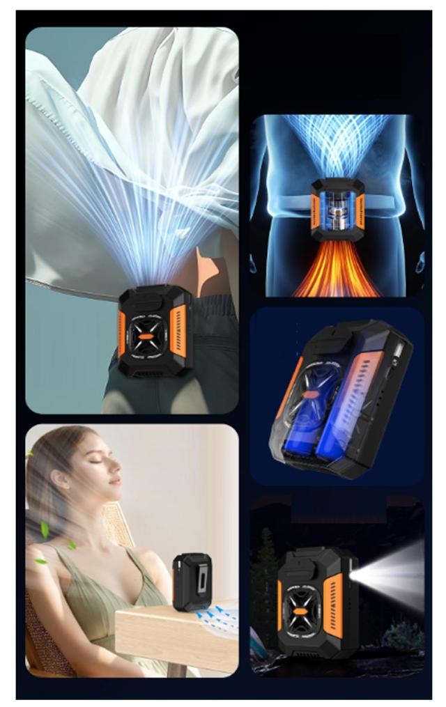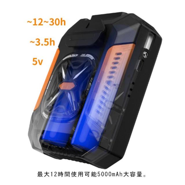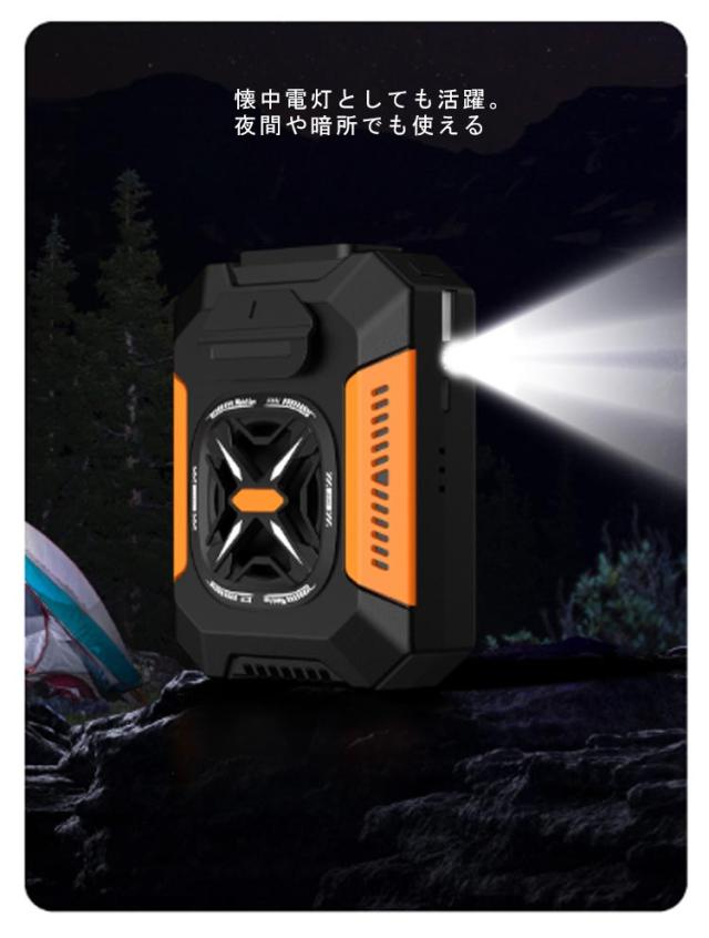| ベルトファン 腰掛け ライト付き としても。充電しながら使用可能 最大12時間使用可能5000mAh大容量。 懐中電灯としても活躍。夜間や暗所でも使える | |