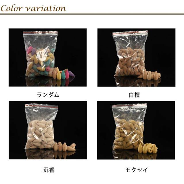 | 倒流香用 お香 8種類 120粒 倒流香の煙は、空気よりほんの少し重たい煙です。風の影響を受けやすいので、 風の影響の少ない場所や環境でお楽しみください 流れ落ちる煙がテーブルや敷物に触れると、お香の成分が付着する場合があります。 | |