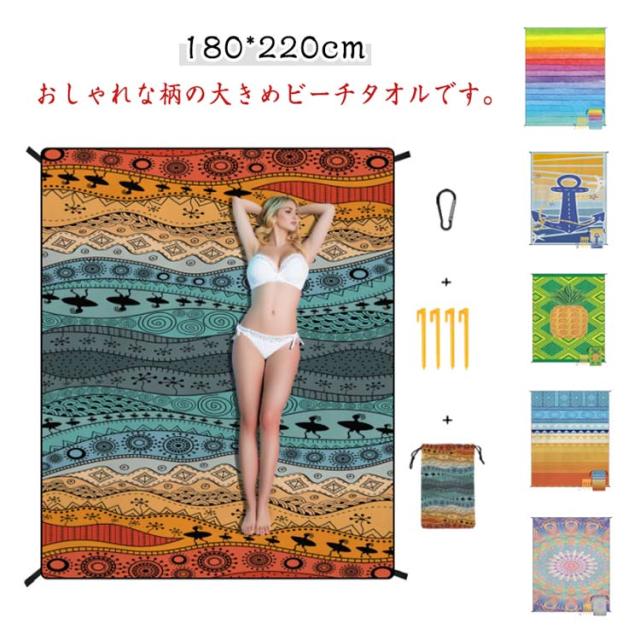 ビーチタオル 大判 180x220cm レジャーシート タオル ブランケット 定番 スクエア型 タオル ビーチマット オーバーサイズ 大判 ビーチタオル バスタオル コンパクト ピクニックシート 大判 折り畳み 携帯便利 軽量 お花見 行楽 運動会 バーベキュー