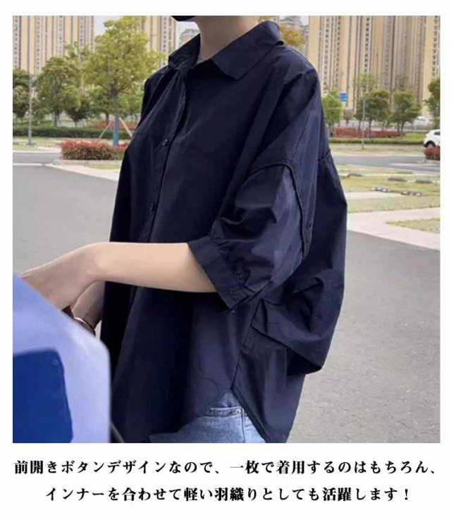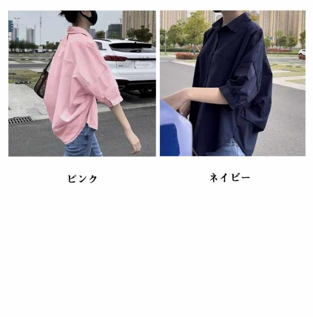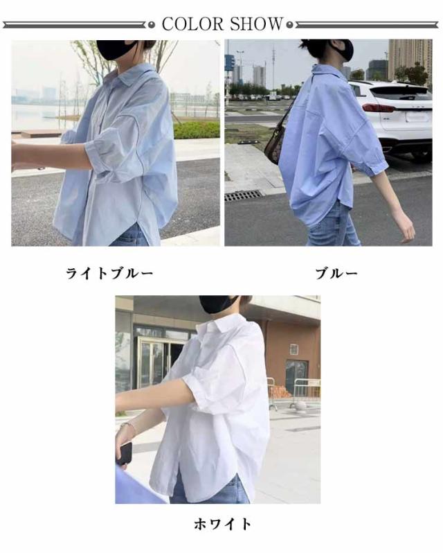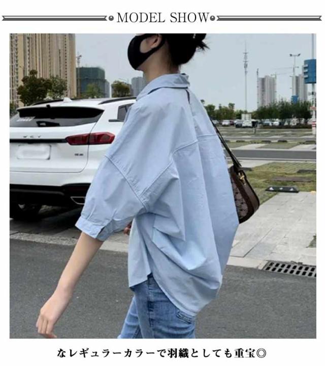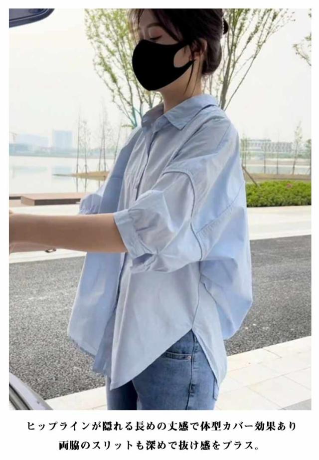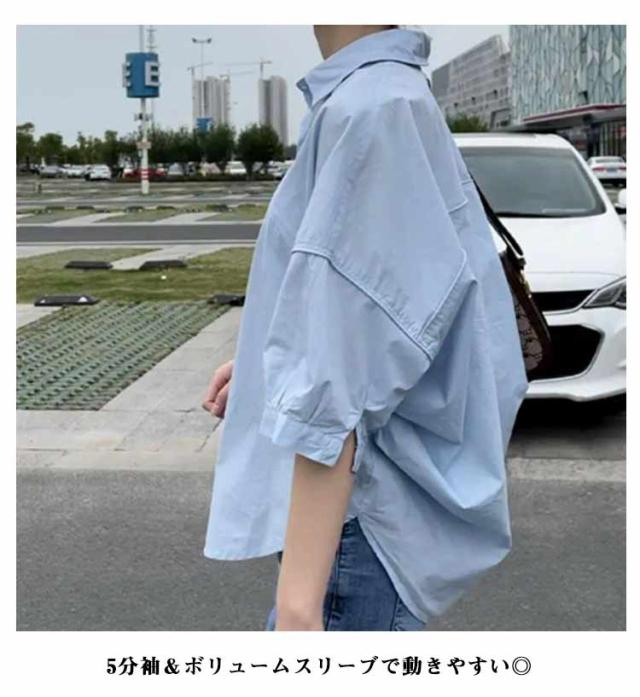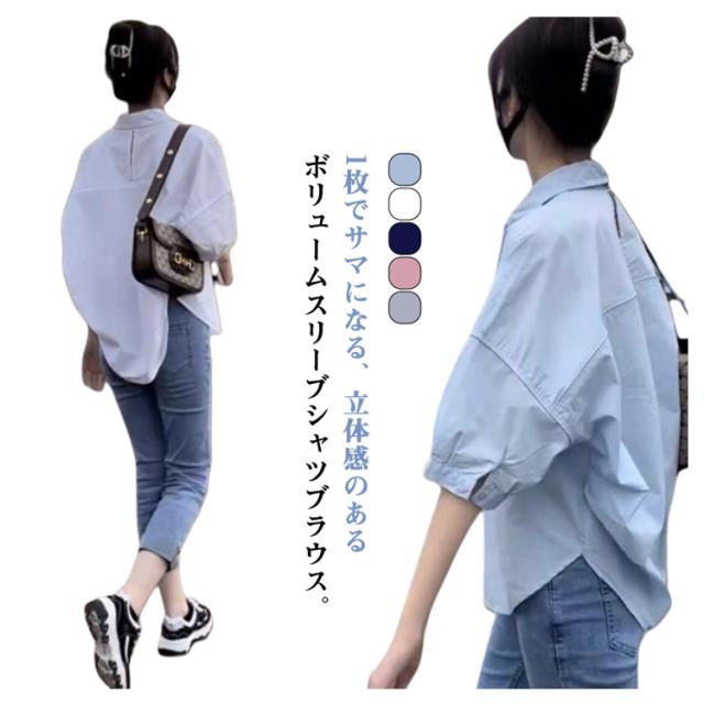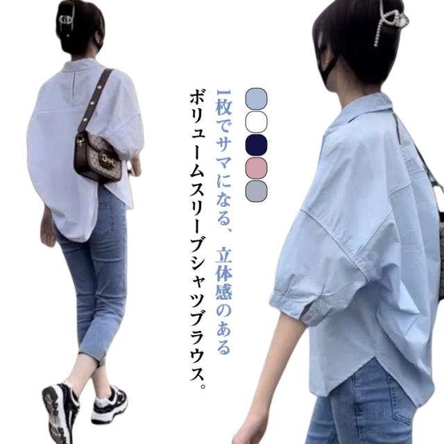 五分袖 シャツ ブラウス チュニック丈 レディース 夏 半袖 トップス 半袖シャツ ボリューム袖 襟付き 薄手 シャツブラウス チュニックシャツ サイドスリット ゆったり 体型カバー カジュアル きれいめ おしゃれ 夏物 【送無】