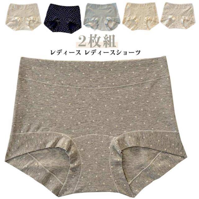 ショーツ レディース 深め 綿 ショーツ パンツ ハイウエスト 2枚組 スダンダードショーツ サニタリーショーツ 締め付けない リボン柄 花柄 チェック柄 大人可愛い おしゃれ 女性下着