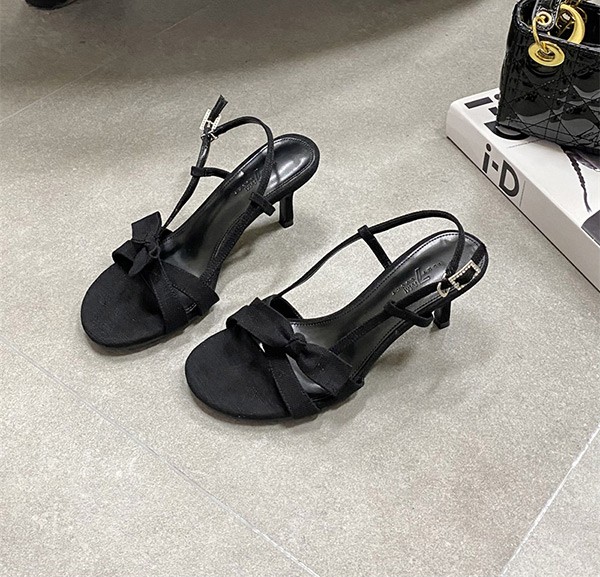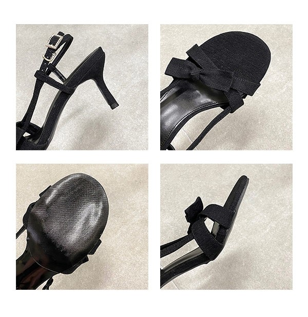 【22.5-25.0cm】華奢 サンダル レディース リボン 薄底サンダル ピンヒール かかとあり 夏 ベルト 靴 アンクルストラップ 大きいサイズ25.0 美脚 通勤 OL オフィス ストラップサンダル ブラック ベージュ ブルー