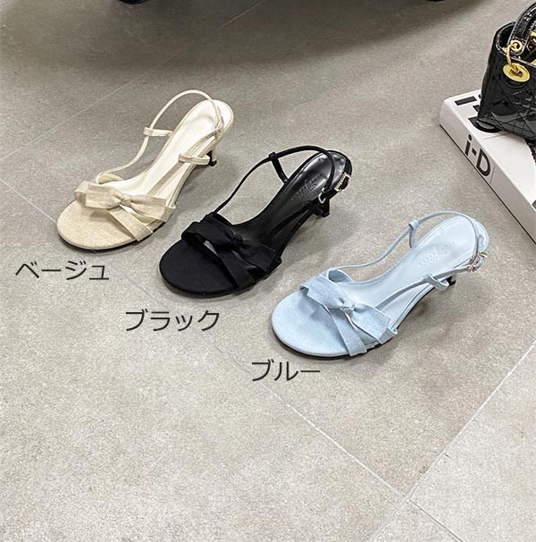 【22.5-25.0cm】華奢 サンダル レディース リボン 薄底サンダル ピンヒール かかとあり 夏 ベルト 靴 アンクルストラップ 大きいサイズ25.0 美脚 通勤 OL オフィス ストラップサンダル ブラック ベージュ ブルー n5005m5