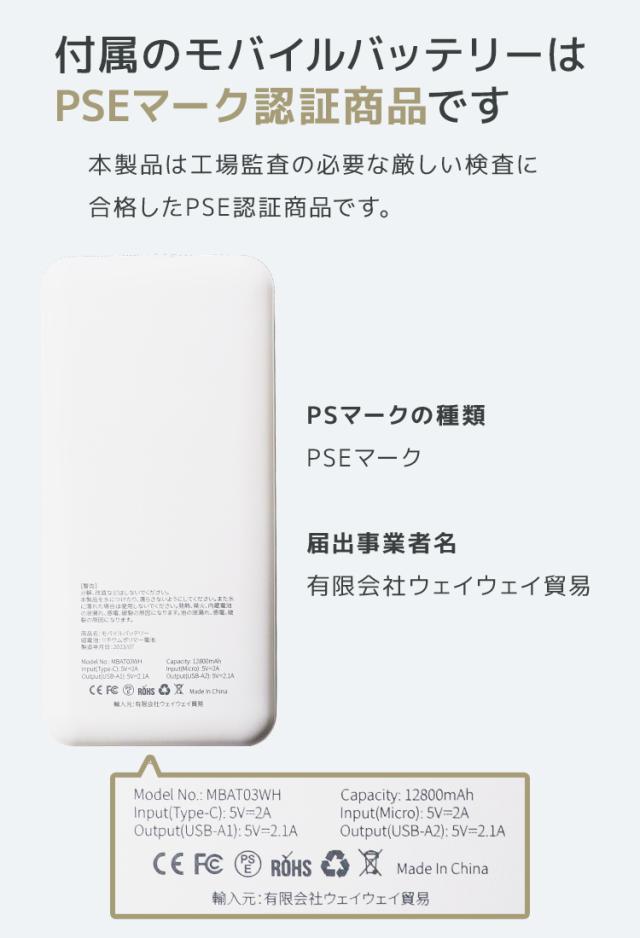 | PSマーク | 本製品は工場監査の必要な厳しい検査に合格したPSE認証商品です。 【PSマークの種類】PSEマーク 【届出事業者名】有限会社ウェイウェイ貿易 |