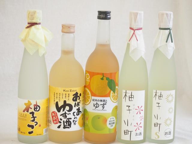 黄金色の一滴柚子5本セット(柚子小町7%(長崎県) 柚子小町S7%(長崎県) 柚子っこ7%(愛知県) 国産ゆず100%おばあちゃんのゆず酒 7度 紀州の梅酒とゆず12度) 500ml×3本 720ml×2本