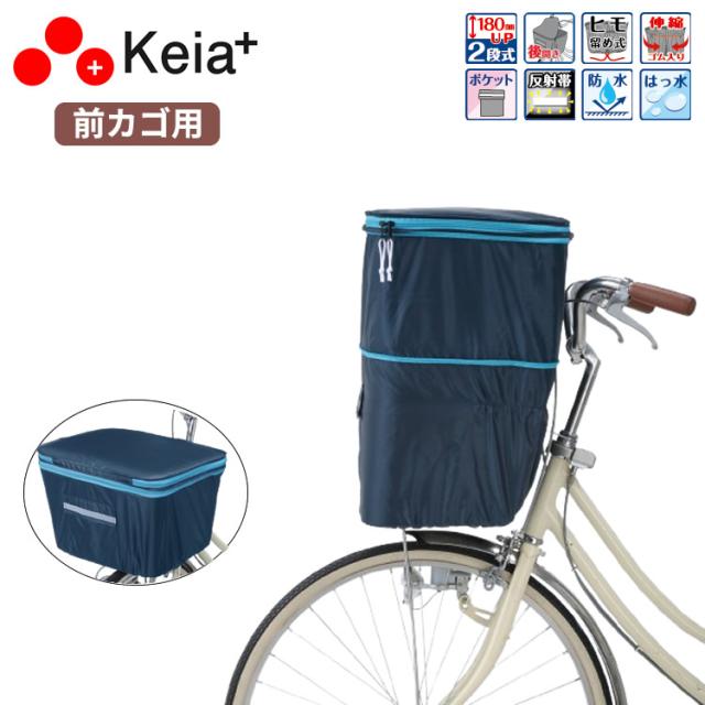 2段式大型角型前カゴカバー 電動アシスト車対応 KW-787NV/BL 角型前カゴに2段式で容量アップ 自転車 前かごカバー フロントバスケットカバー 撥水加工 ひったくり防止