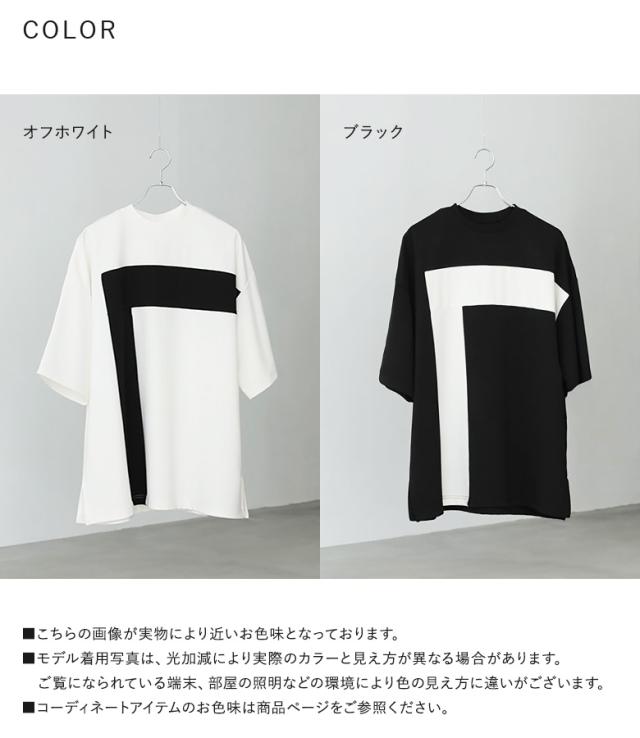 ■デザイン 前身頃に配色切替を入れたポンチ素材のビッグTシャツ。両脇スリット入りで抜け感のある着こなしができます。長めの着丈とワイドなシルエットで、着心地も抜群。 ■コーディネート デニムに合わせてカジュアルに。シンプルなボトムと合わせていただくと、トップスが惹き立つスタイリングになります。足元はスニーカーでカジュアルに、レザーシューズで上品にと、合わせるアイテム次第で様々な表情を楽しめます。 ■素材 さらりとした肌触りのポンチ素材を使用しています。伸縮性に優れており、動きやすさも抜群です。適度な厚みがありながらもごわつかず、着心地も良く着用できます。 ■製品についての注意書き 染色の特質上、発汗や摩擦により色落ちすることがありますのでご注意ください。 また、着用中の摩擦により色移りしやすい特性がありますので、白や淡色との組合わせはご遠慮ください。 他の製品に色が移ることがありますので、一緒に洗わず単独で洗ってください。 ご了承の上、ご購入いただきますようお願いいたします。 |