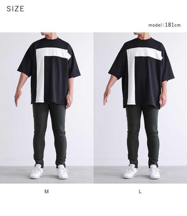 『MDRポンチ配色切替ビッグTシャツ』【メール便不可】【20】[Tシャツ メンズ トップス カットソー 半袖 プルオーバー クルーネック ビッグT ビッグTシャツ 配色 ワイド スリット ポンチ生地 春 夏]