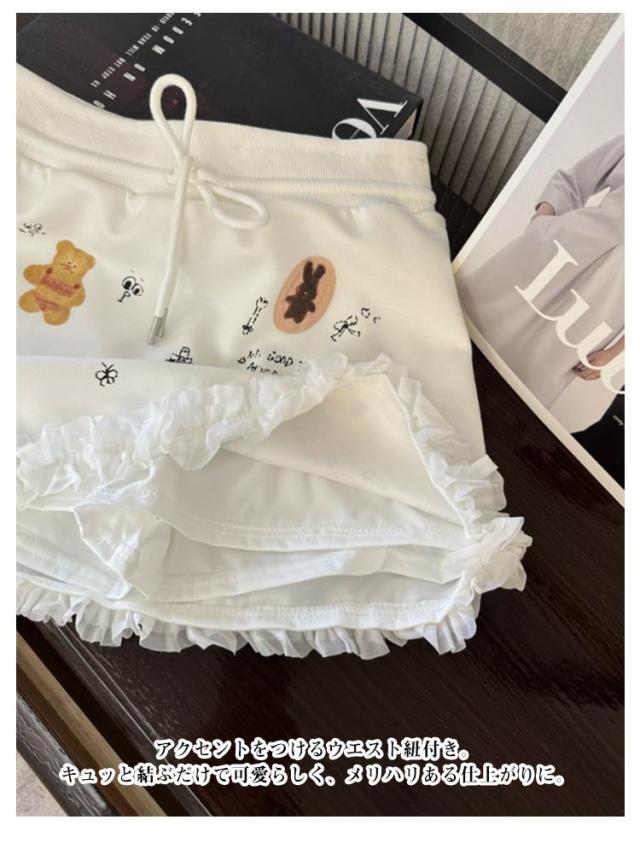 レース 可愛い スウェットスカート ストレッチ インナーパンツ付き フリル裾 レディース スカート プリント スウェット 台形スカート スウェット 着?せ 快適 カジュアル きれいめ おしゃれ ガーリー