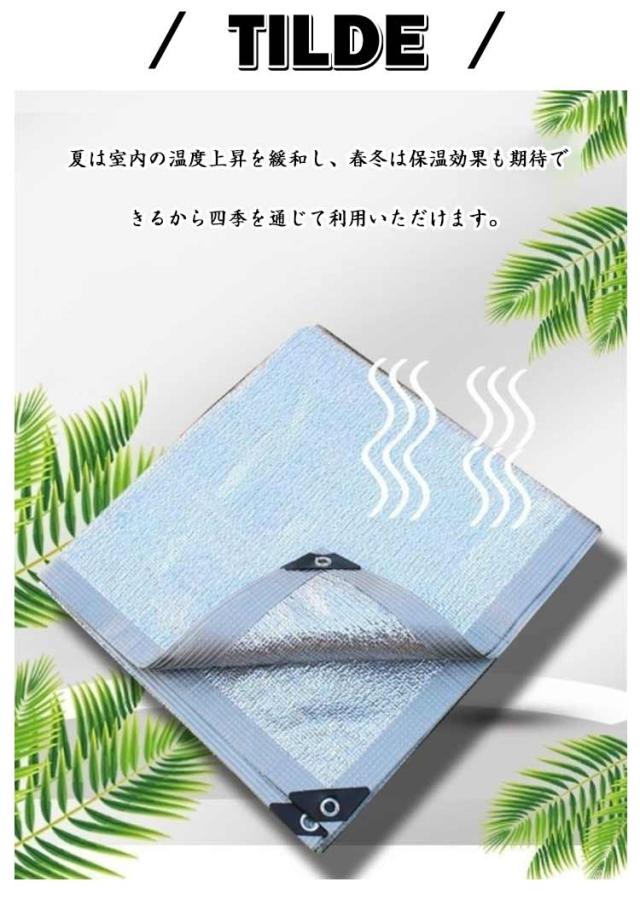 | 遮光率99%! 日光をはね返すアルミ日よけシェード。 窓などからの直射日光を防ぎ、室内の温度上昇を抑え、節電効果も◎ 西日対策として、窓、ベランダ、廊下、庭、玄関などはに張って日よけ・目隠しに◎ キャンプやBBQなどアウトドア時も大活躍。 大切な草花を暑い日ざしから守ります。 丈夫なテープで一周して丁寧にパイピングを施し、強度アップ! 夏は室内の温度上昇を緩和し、春冬は保温効果も期待できるから四季を通じて利用いただけます。 | |