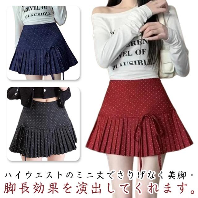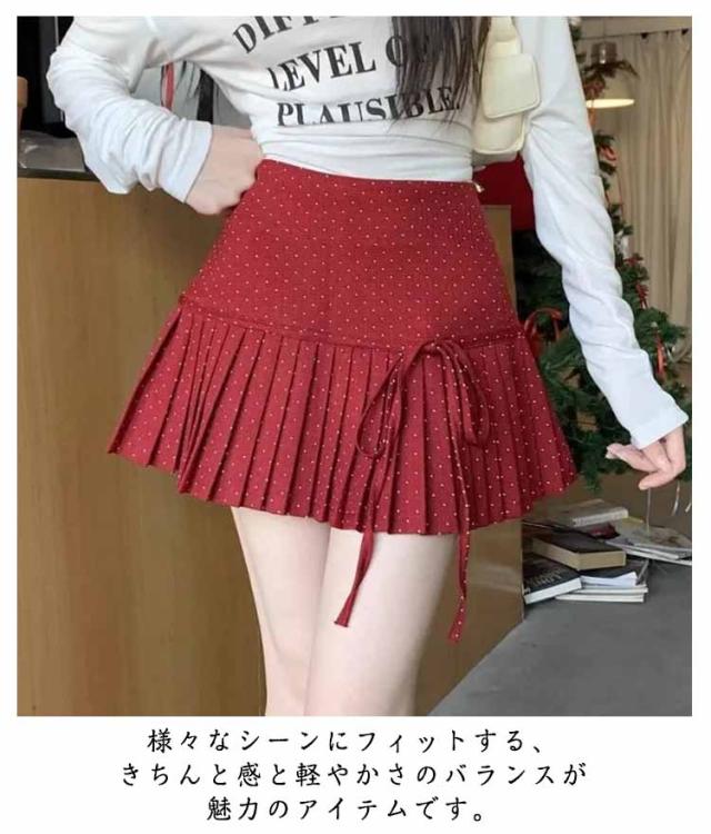aライン ペチパンツ 夏 プリーツスカート ミニスカート レッド インナーパンツ付き ブラック レディース ミニスカート シンプル ハイウエスト 着?せ リボン付き 大人可愛い ダークブルー スカート きれいめ おしゃれ