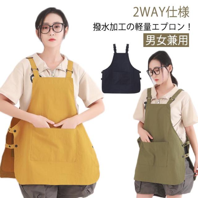 ワークエプロン 防汚 撥水 ポケット付き エプロン カフェ 保育士 両面 袖なし 介護用 男女兼用 ワンピース 大きいサイズ おしゃれ 無地 男女兼用 前後2way ガーデニング 作業用 家庭用
