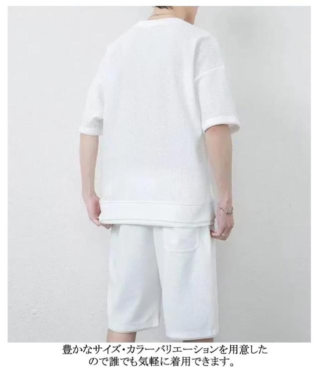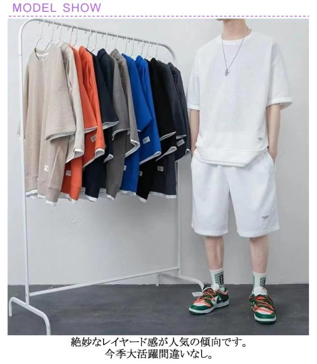 | 超快適で夏でも涼しく感じさせるメンズセットアップ 通気性や吸水性にも優れているワッフル生地で夏に人気なジャージセット&カジュアルセット。 絶妙なレイヤード感が人気の傾向です。今季大活躍間違いなし。 ウエストはゴムと紐で調整できるイージータイプ、サイドにはポケットがついているので実用性も兼ね備えています。 女性でも着用できるユニセックスサイズも魅力です。 豊かなサイズ・カラーバリエーションを用意したので誰でも気軽に着用できます。 | |
