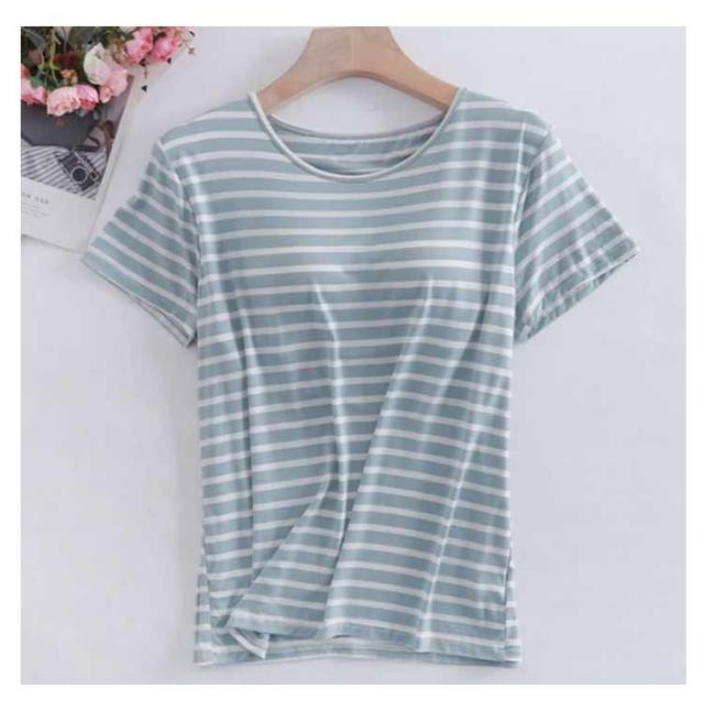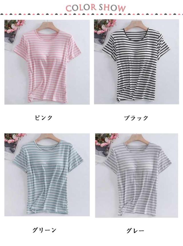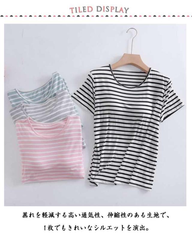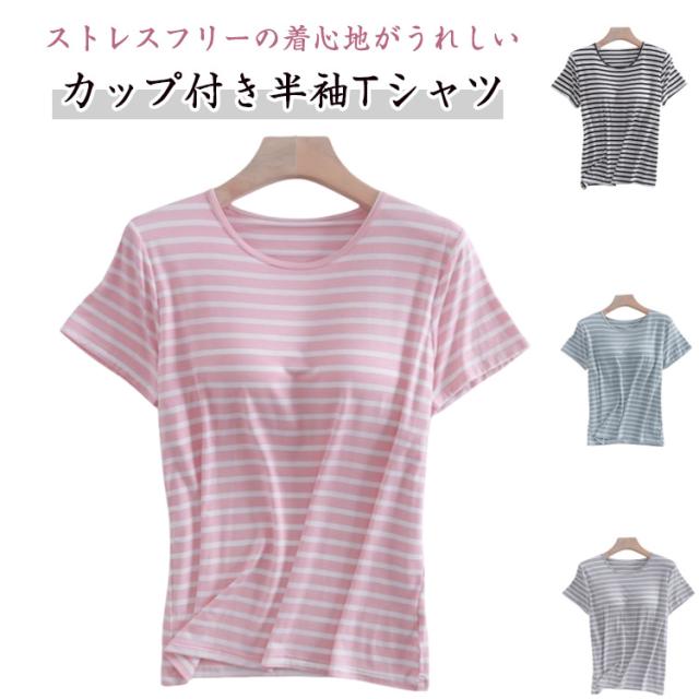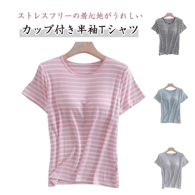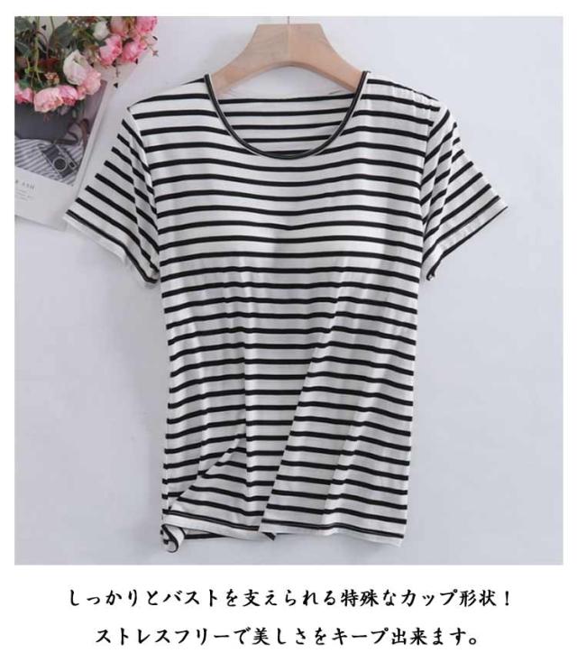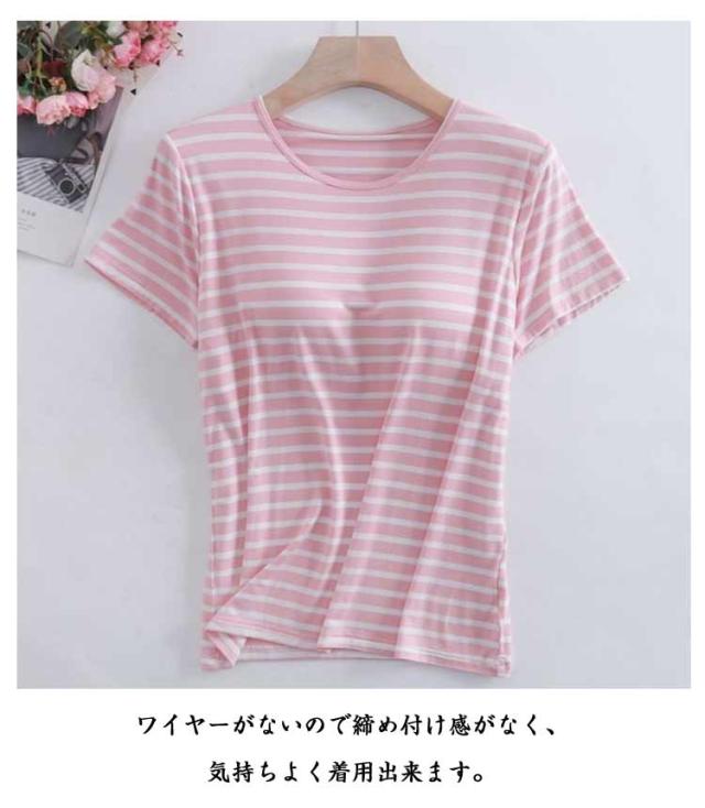 パジャマ レディース 吸水速乾 カップ付き ボーダー柄 ルームウェア トップス Tシャツ 半袖 春夏 夏 カップ付き Tシャツ ブラトップ ストレッチ 薄手 肌着 下着 無地 カップ付き Tシャツブラ 伸縮性 Tシャツ ブラトップ