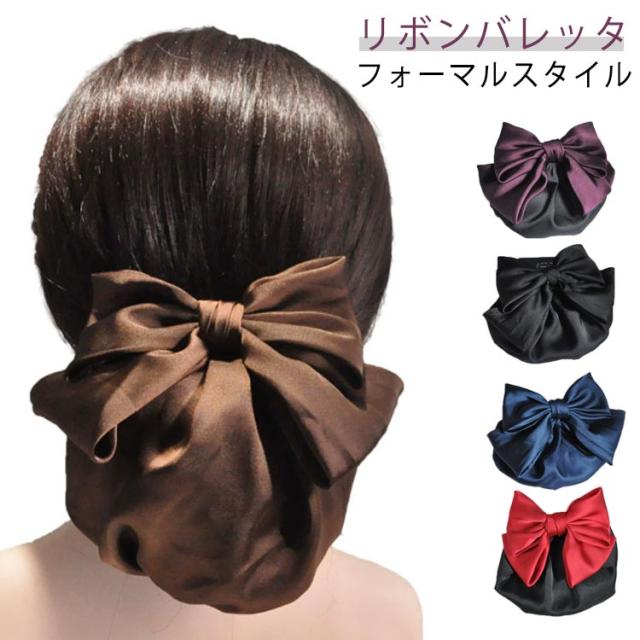 | フォーマルスタイル リボンバレッタ ネット付きなのできちんとした印象になります。 余分な装飾がないのでオフィスやお仕事、冠婚葬祭でも活躍します。 接客業の方、和装をされる方へ。 すっぽりカバーで、スッキリ好印象♪ | |