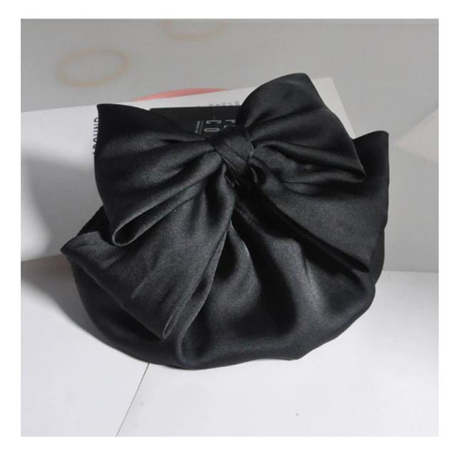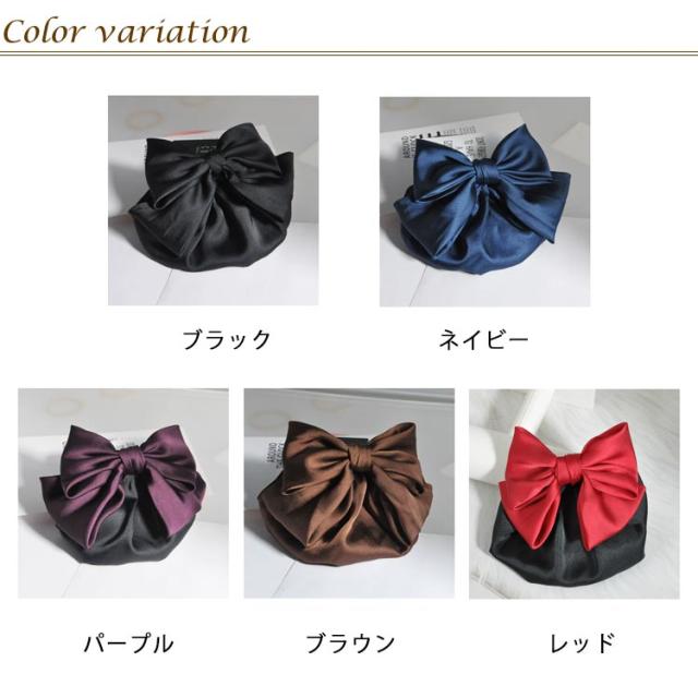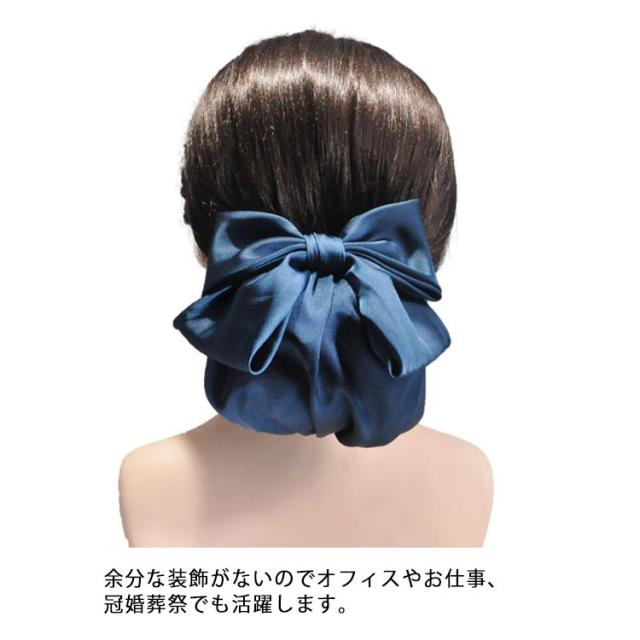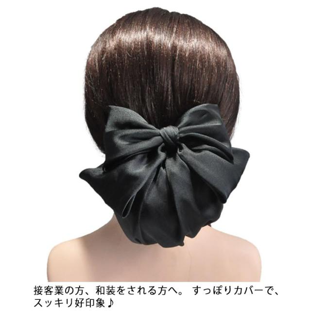 シニョン ブラック リボンバレッタ ネット まとめ髪 お団子 ネットつき まとめ髪 送料無料 シンプル バレッタ 簡単 仕事 黒 まとめ髪 仕事 葬式 シニヨン 業務 着物 就活 サテン ヘアアクセサリー 母の日 ギフト