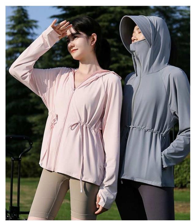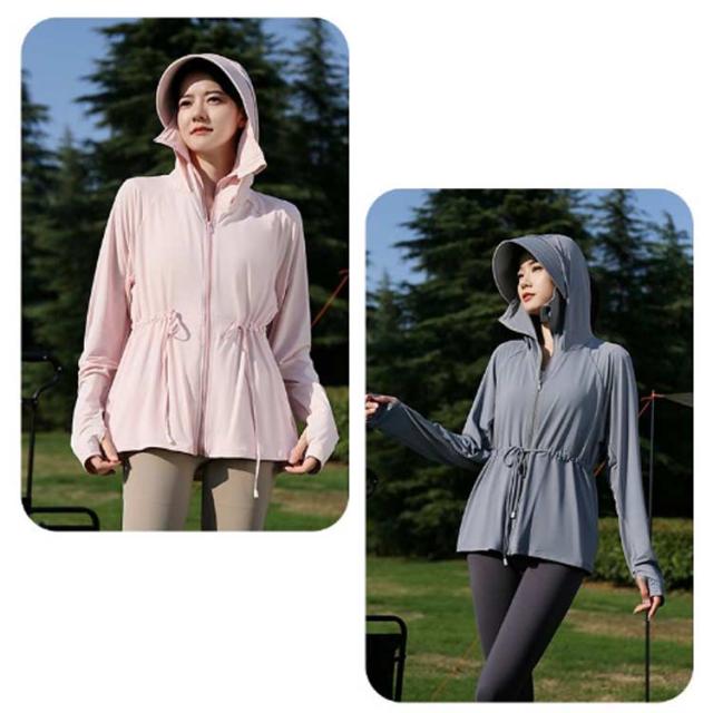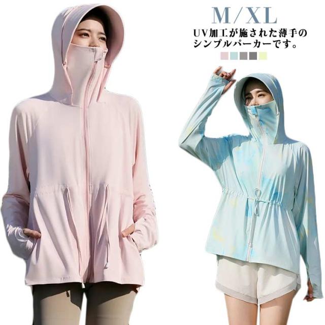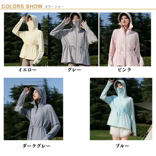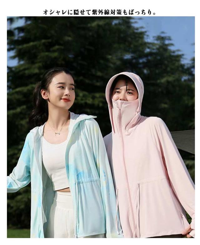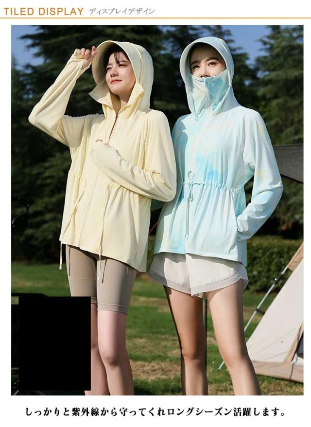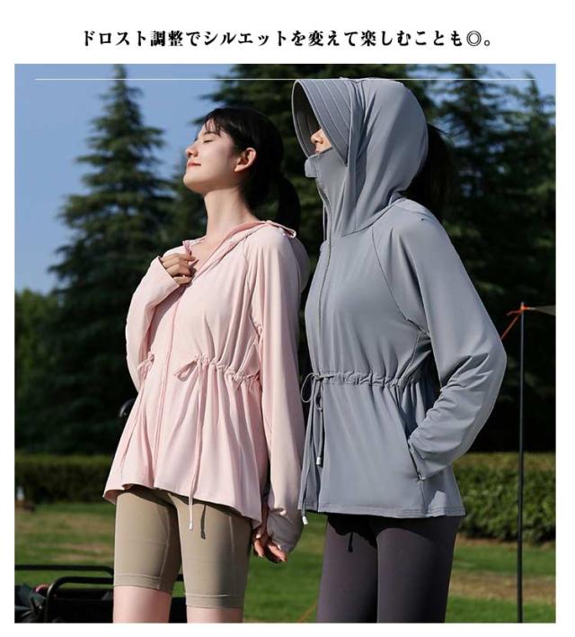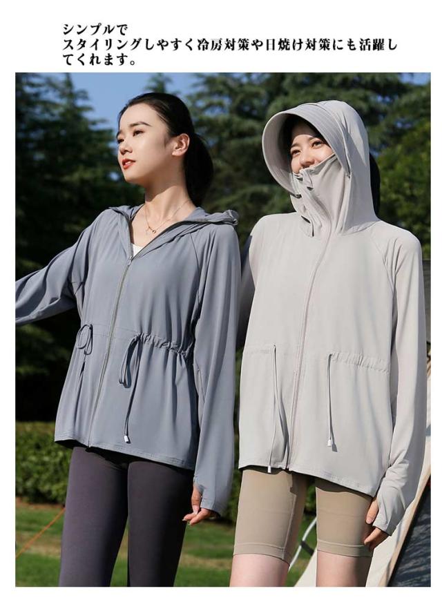 接触冷感 長袖トップス 無地 ロング パーカー アウター レディース ラッシュパーカー 吸水速乾 UVカット 通気性抜群 薄手 長袖 ドロスト調整 取り外し サンバイザー お尻が隠れる ストレッチ 体型カバー 大きいサイズ 羽織
