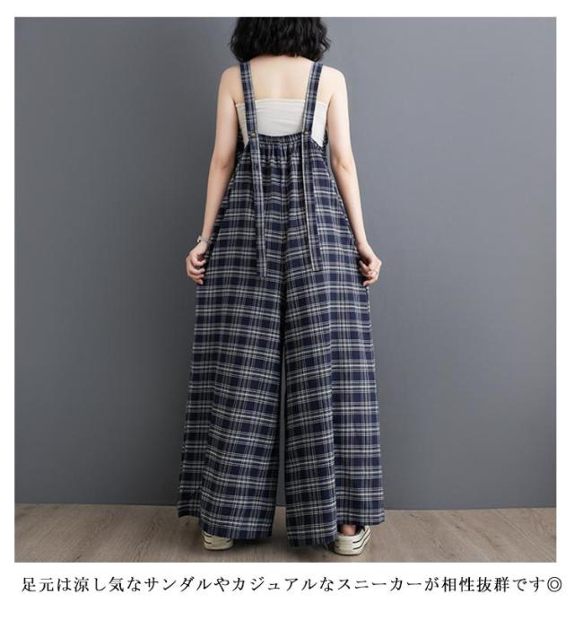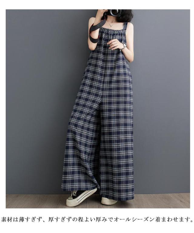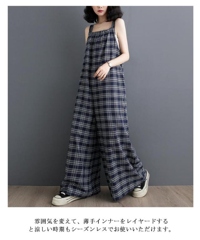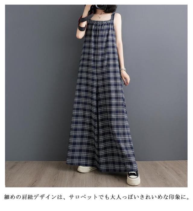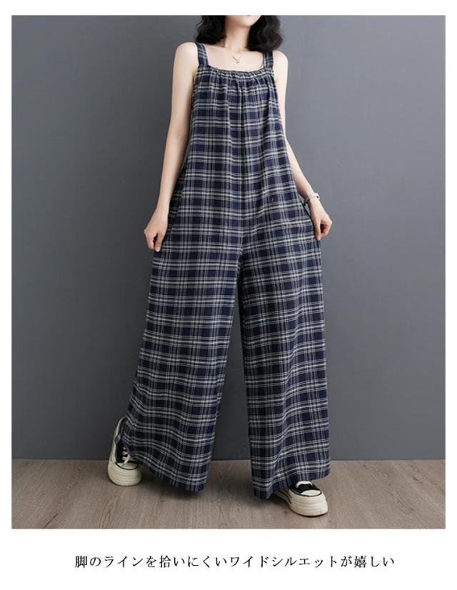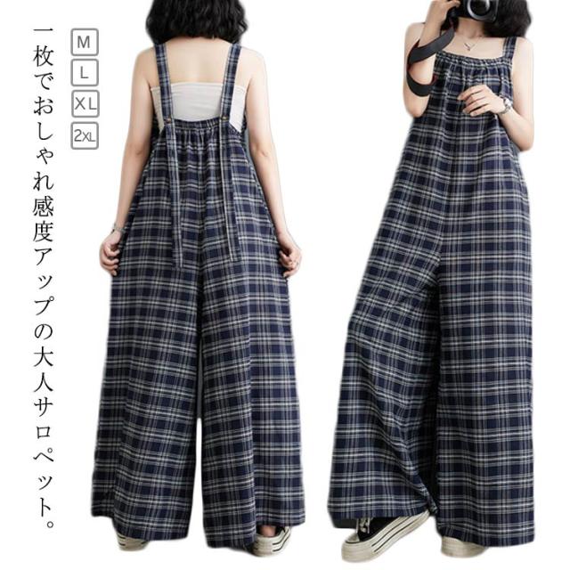 オーバーオール サロペットパンツ ワイドパンツ チェック柄 パンツ 秋 キャミサロペット スクエアネック オールインワン 体型カバー 通学 美脚 かわいい ゆったり サロペット 夏 チェック柄 通勤 レディース 春 着痩せ 大人 サロペット パンツ キャミソール パンツ