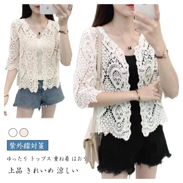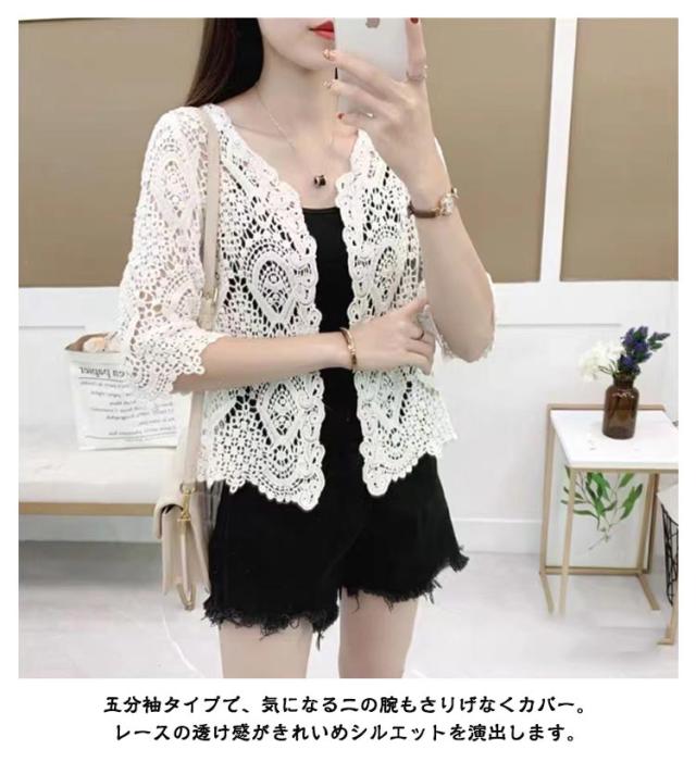 レディース アウター 夏服 uvカット 透かし編み 半袖 ボレロ 透かし編み 花柄 夏 薄手 レース サマーカーディガン ショート丈 ニットカーディガン 可愛い 前開き 透け感 羽織り 紫外線対策 ゆったり トップス 重ね着 はおり 上品 きれいめ 涼しい