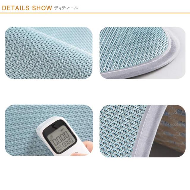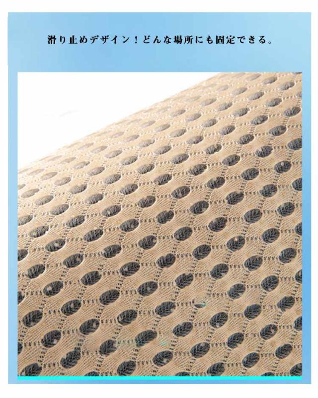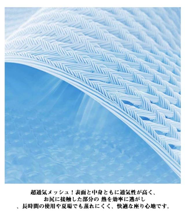 | 選べる6サイズ 蒸れない 接触冷感チェアクッション 長時間のデスクワーク・車の運転によるお尻の不快感を軽減!アウトドアにも! 超通気メッシュ!表面と中身ともに通気性が高く、お尻に接触した部分の 熱を効率に逃がし、長時間の使用や夏場でも蒸れにくく、快適な座り心地です。 滑り止めデザイン!どんな場所にも固定できる。 | |