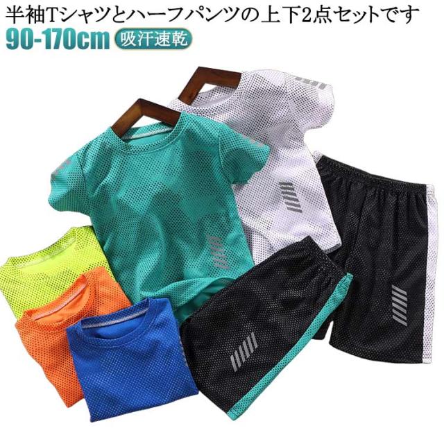 | 90-170cm!半袖Tシャツとハーフパンツの上下2点セットです。 速乾素材なので汗をかいてもすぐに乾き、爽やかな着心地が持続します。 メッシュ状になっているので、発汗時でも素肌に生地を密着させず、ベタつき感を軽減。 スポーツ、ランニングやウォーキング、レジャーやアウトドアにもお使い頂けます。 | |