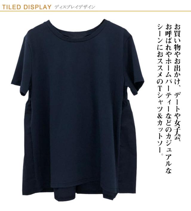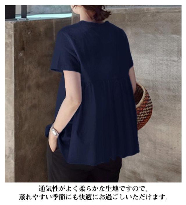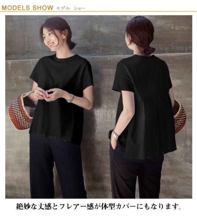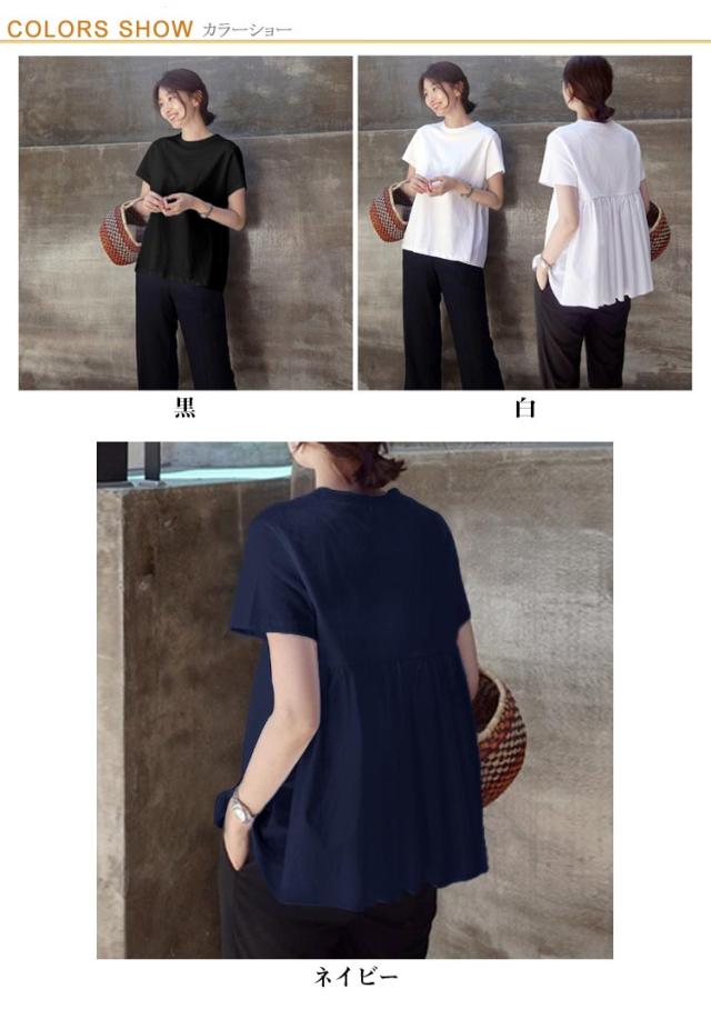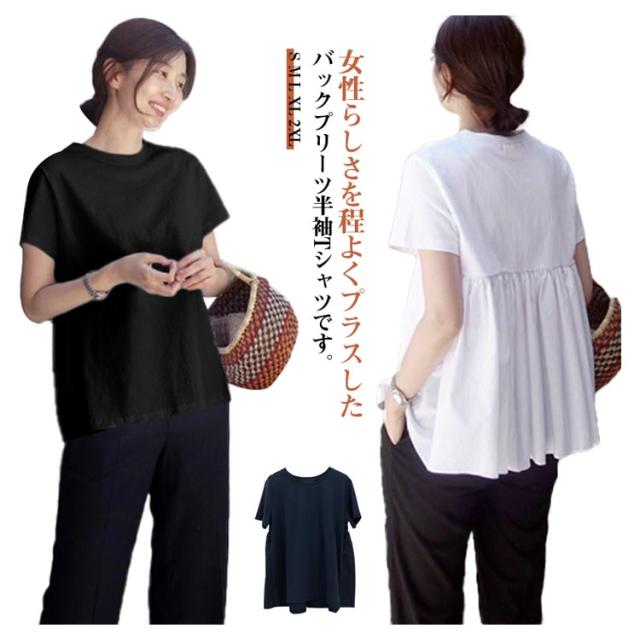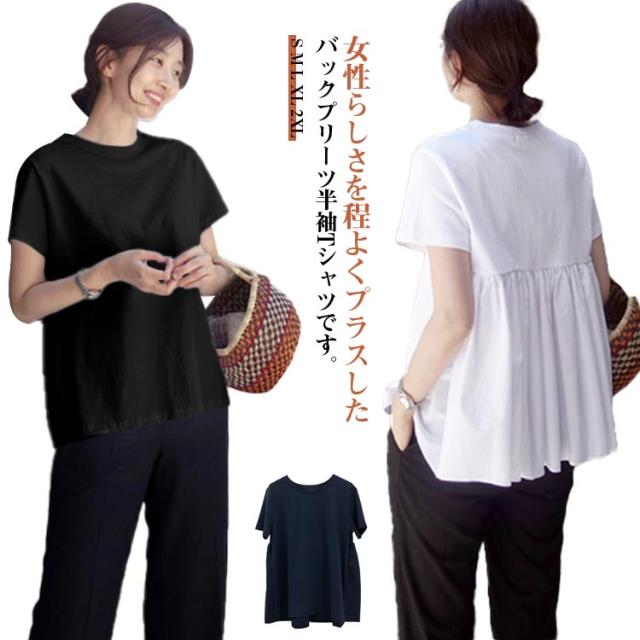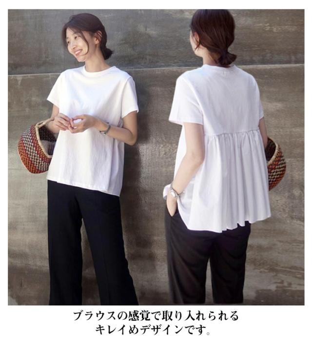 ギャザー バックフリル トップス ペプラム 後ろ ゆったり無地 カットソー レディース バックペプラム カジュアル きれいめ シンプル 体型カバー ギャザー ラウンドネック 半袖 春 夏 白 ホワイト