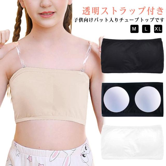 カップ付き ストラップ キッズ ノンワイヤー ジュニア チューブトップ 落ちない チューブトップ ダンス 透明ストラップ付き ベアトップ ストレッチ性 子供用 通気性 インナー