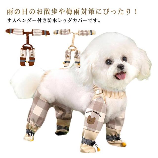 レッグカバー サスペンダー付き 犬用 ブーツ 防水 レインパンツ ドッグウェア 肉球保護 散歩 脱げない 滑り止め 汚れ防止 雨の日対策 梅雨対策 犬用 お出かけ用 中型犬 小型犬 四足カバー 通気性 軽量 反射テープ付き
