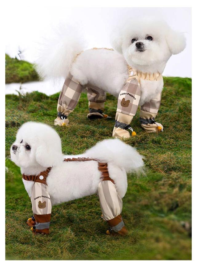 | 雨の日のお散歩や梅雨対策にぴったり!サスペンダー付き防水レッグカバーです。 【防水&滑り止めで雨の日も安心】撥水性に優れた素材と肉球部分の滑り止め加工で、雨の日のぬかるみや濡れた地面も快適。汚れやケガを防ぎ、毎日のお散歩がストレスフリーに。 【足に優しく快適な素材】内側は通気性の良い柔らか素材でムレにくく、愛犬の足をやさしく包み込みます。長時間の着用でも負担が少なく、梅雨・雪の日・アウトドアにもぴったり。 【サスペンダーで脱げにくい設計】背中でクロスする着脱簡単なサスペンダー仕様。足元だけでなく上からもしっかりホールドするので、歩いてもズレにくく、動き回るワンちゃんでも安心。 【サイズ調節可能】調節可能なストラップにより、犬の足をしっかり守る足カバーやレッグカバーとして、肉球を保護し、傷や汚れを防止します。 【反射素材で夜間も安全】犬用サスペンダーブーツは、反射素材を使用しており、夜間でも安全に散歩や屋外活動ができます。 【幅広い犬種に対応&調整可能】小型犬〜中型犬まで対応可能な調節ベルト付きデザイン。レインパンツとしてだけでなく、アウトドア・キャンプ・旅行など、さまざまなシーンに大活躍! | |