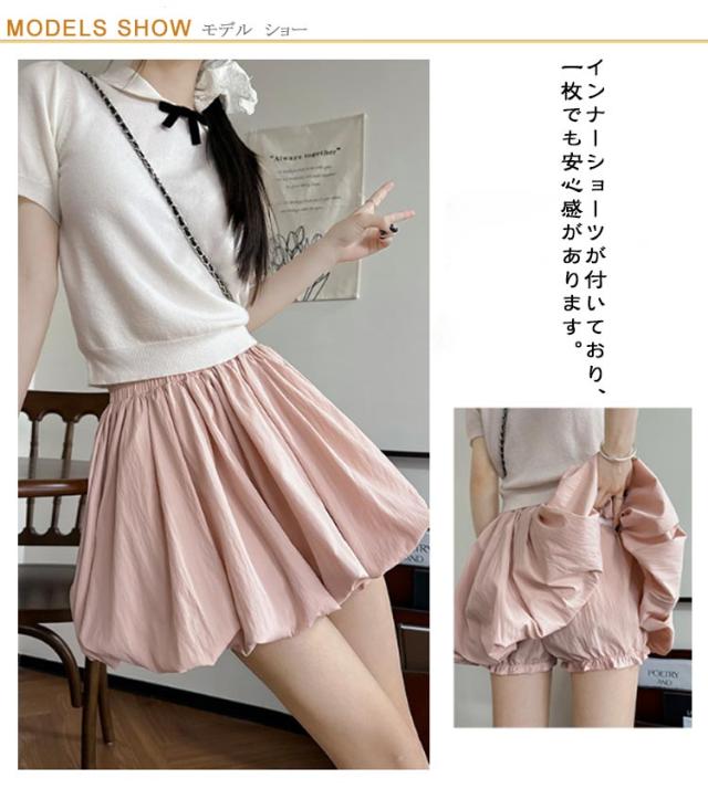 ショートパンツ ミニスカート バルーンパンツ ミニ スカート スカート ウエストゴム スカーチョ カジュアル ボトムス おしゃれ 可愛い