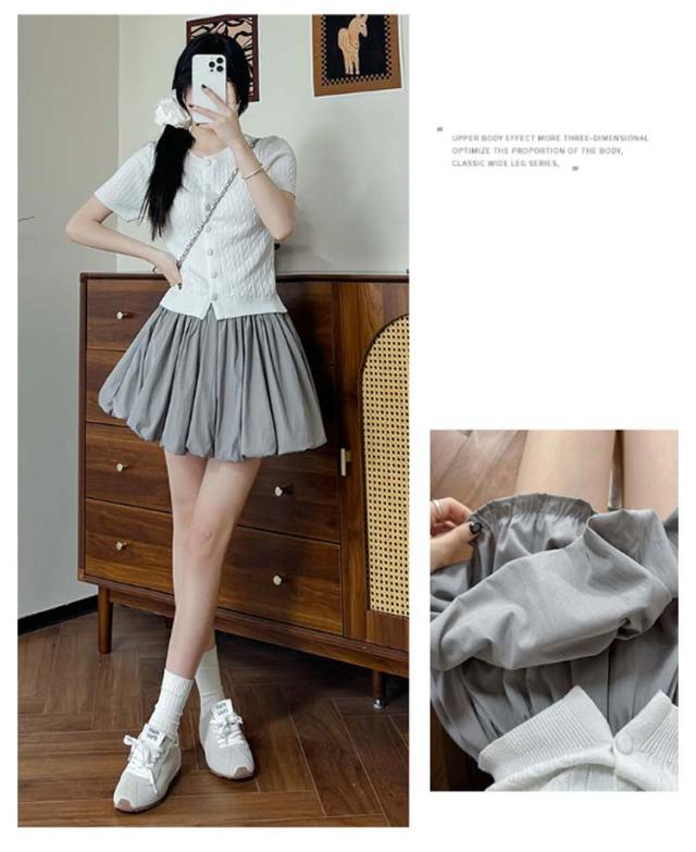 | ・トレンドのバルーンシルエットのミニキュロットです。 ・インナーショーツが付いており、一枚でも安心感があります。 ・裾にボリュームが出る分、視覚的に脚をすっきりと長く魅せてくれるのも嬉しいPoint。 | |