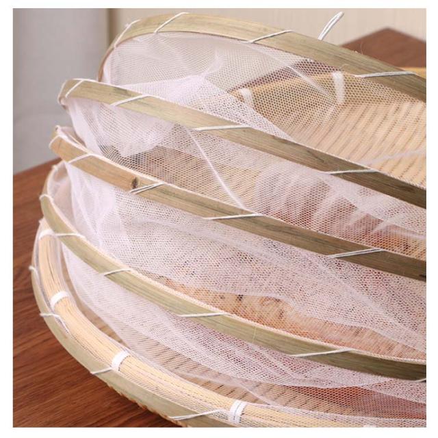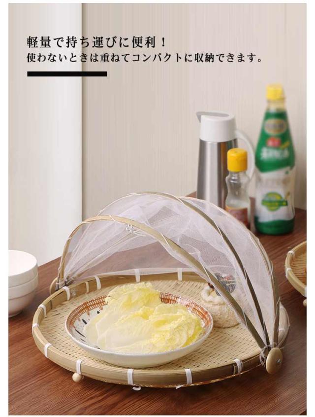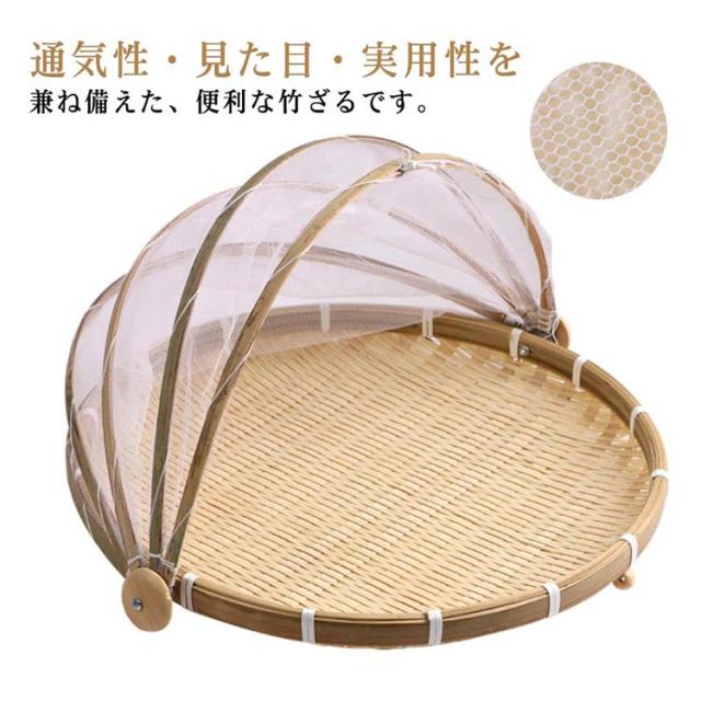 水切りザル 盆ざる ネット付き 竹ざる 梅干し 青竹もり皿 天日干し 漬物 虫対策 可動式フタ 防塵 通気性 梅ざる 竹かご 陰干し 収納便利 使いやすい 台所用品 3サイズ 丸型 丸盆ざる 野菜バスケット 多機能