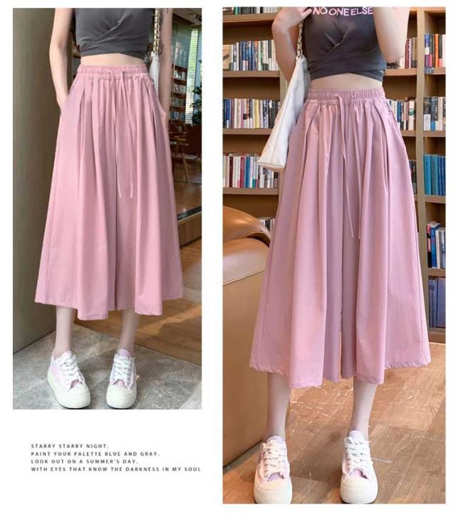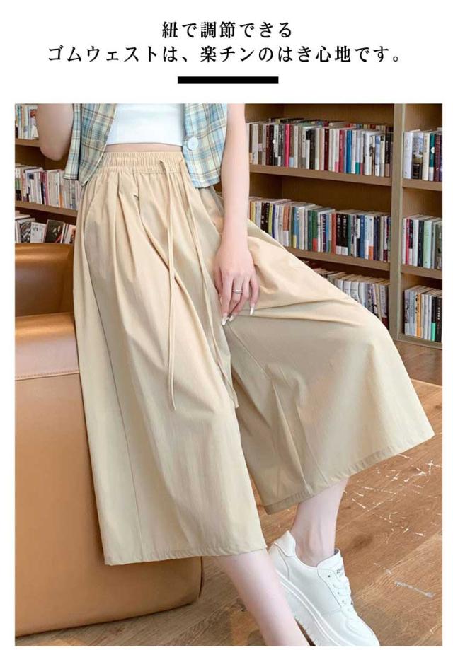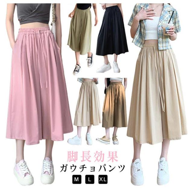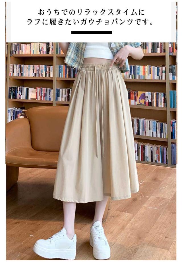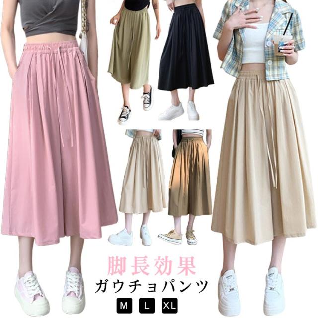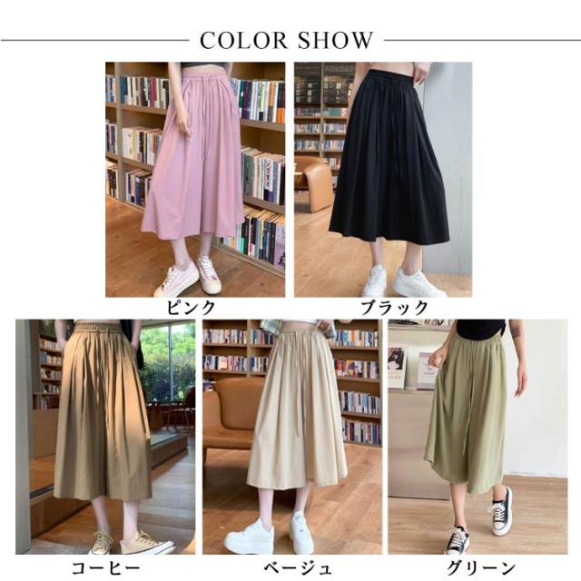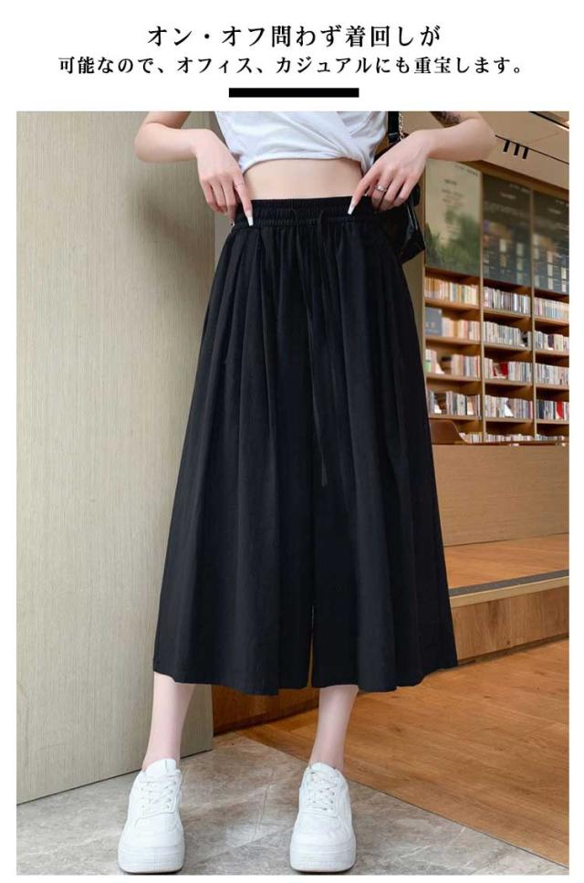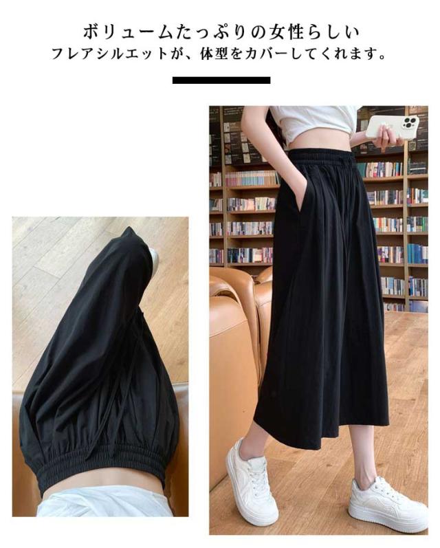 七分丈 スカーチョ ワイドパンツ 体型カバー 冷感 レディース 膝丈 ワイドパンツ ボトム 大きいサイズ ハイウエスト フレアパンツ ゆったり 薄手 楽チン 脚長効果 カジュアル お出かけ