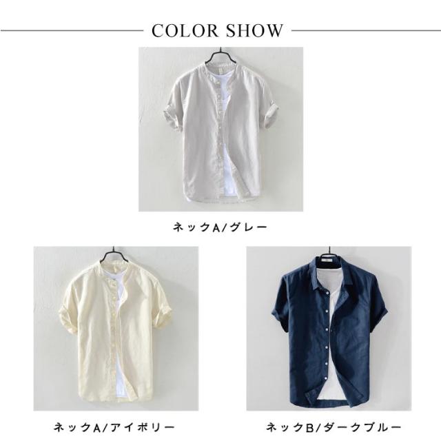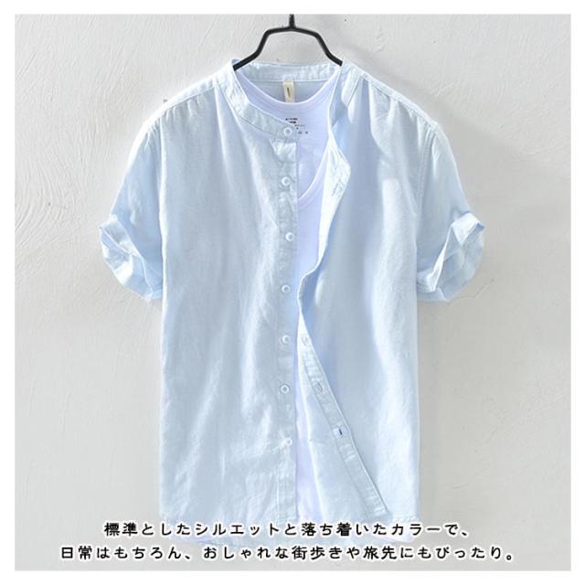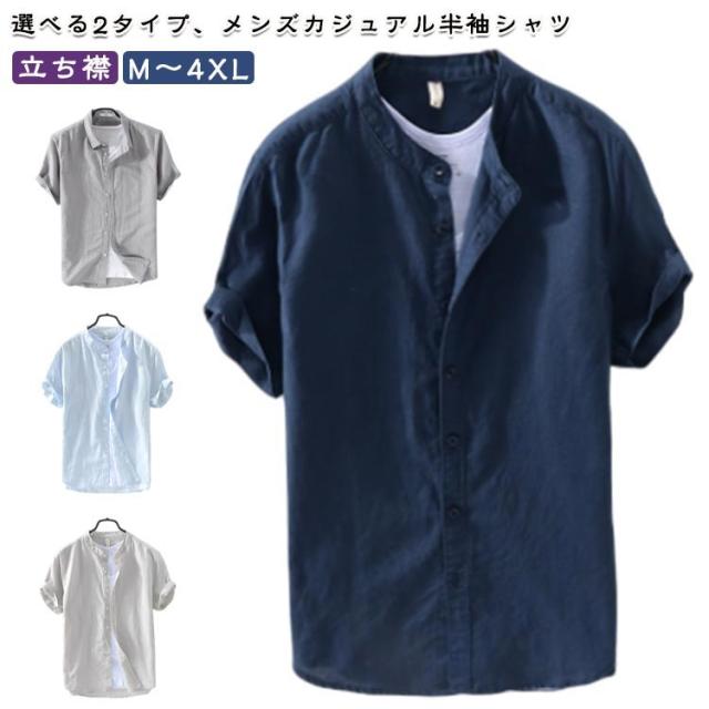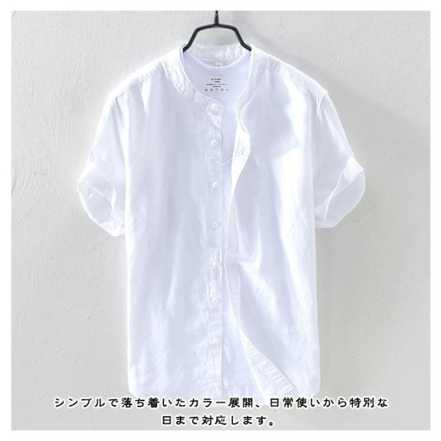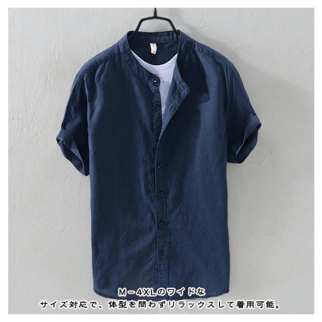 カジュアル おしゃれ バンドカラーシャツ 立ち襟 半袖 カジュアルシャツ おしゃれ 綿混 紳士服 大きいサイズ メンズ カジュアルシャツ 半袖シャツ シンプル トップス 無地シャツ 大人 男性 トップス 夏用 通勤 お出かけ ギフト プレゼント