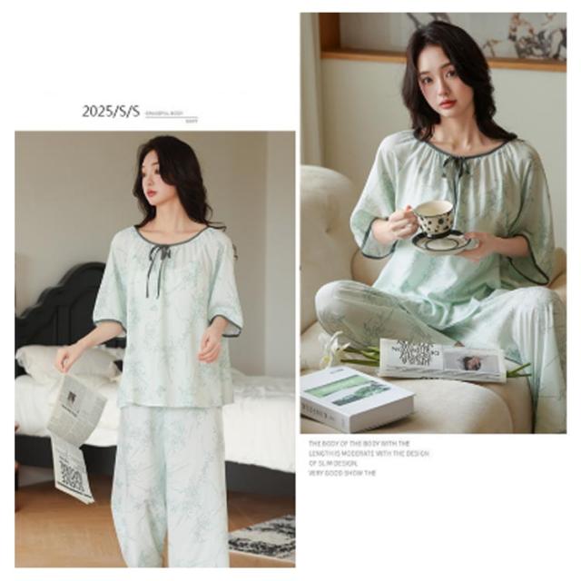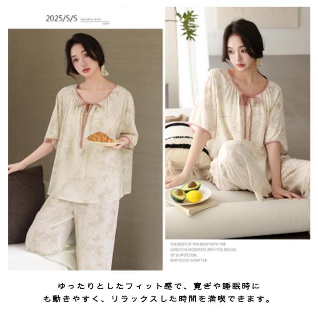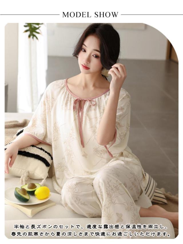 | 春夏に大活躍するレディースルームウェア上下セット 半袖と長ズボンのセットで、適度な露出感と保温性を両立し、春先の肌寒さから夏の涼しさまで快適にお過ごしいただけます。 薄手の素材を使用しており、通気性に優れており、蒸れにくく快適な着心地を実現。 ゆったりとしたフィット感で、寛ぎや睡眠時にも動きやすく、リラックスした時間を満喫できます。 きれいなデザイン、お部屋の時間も可愛い♪ | |