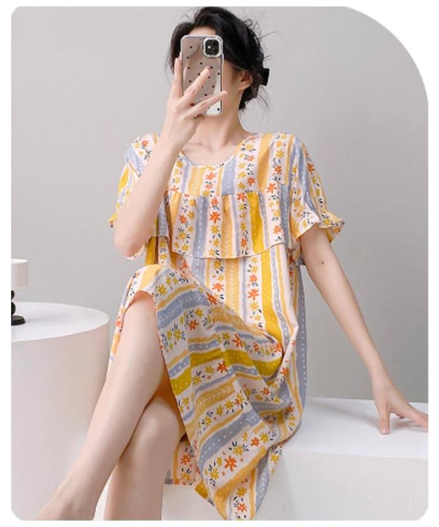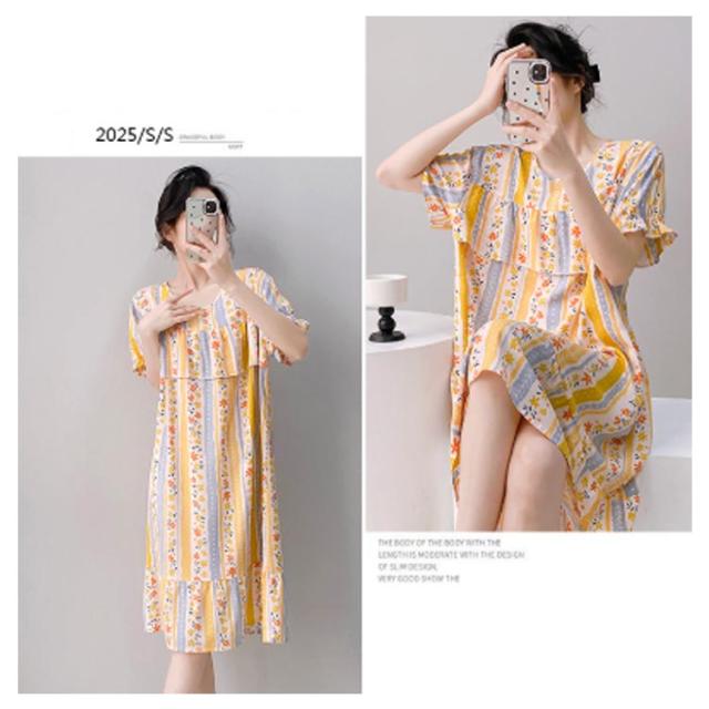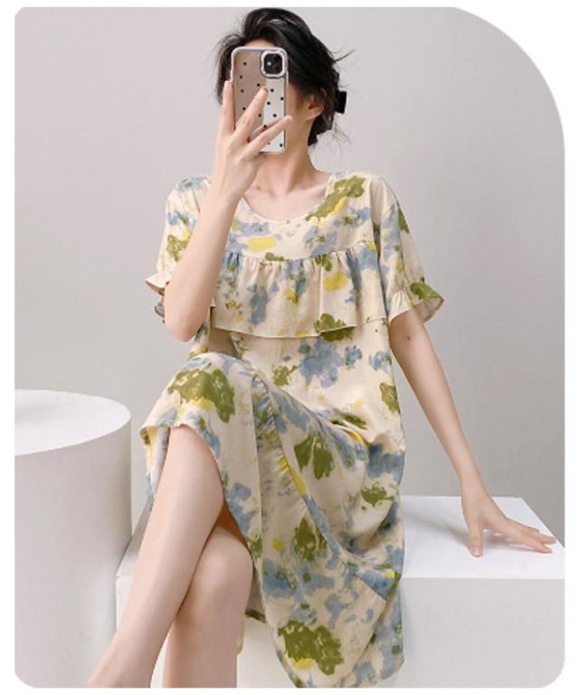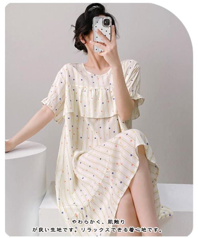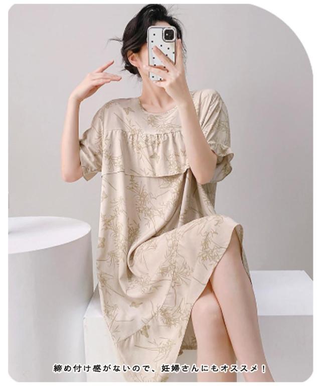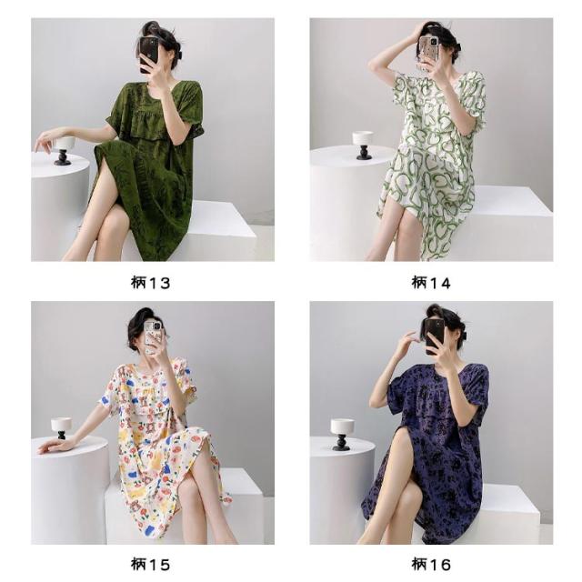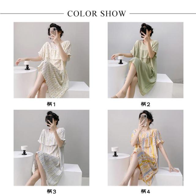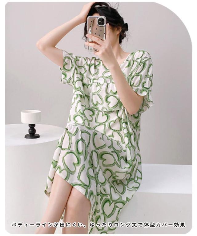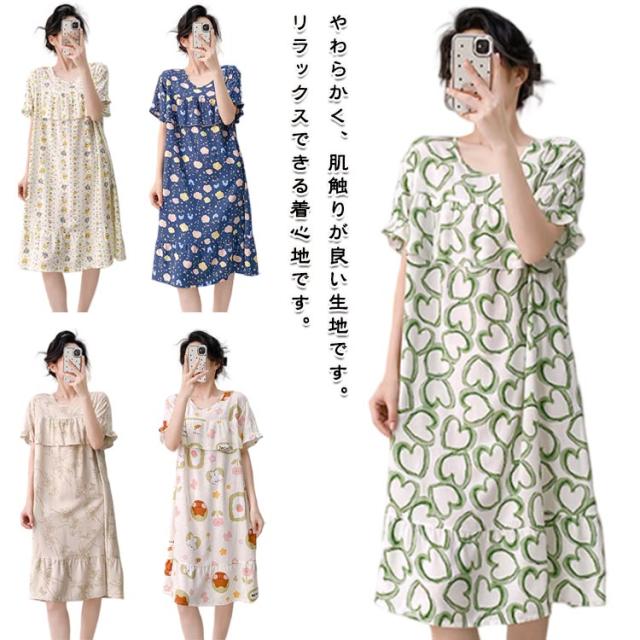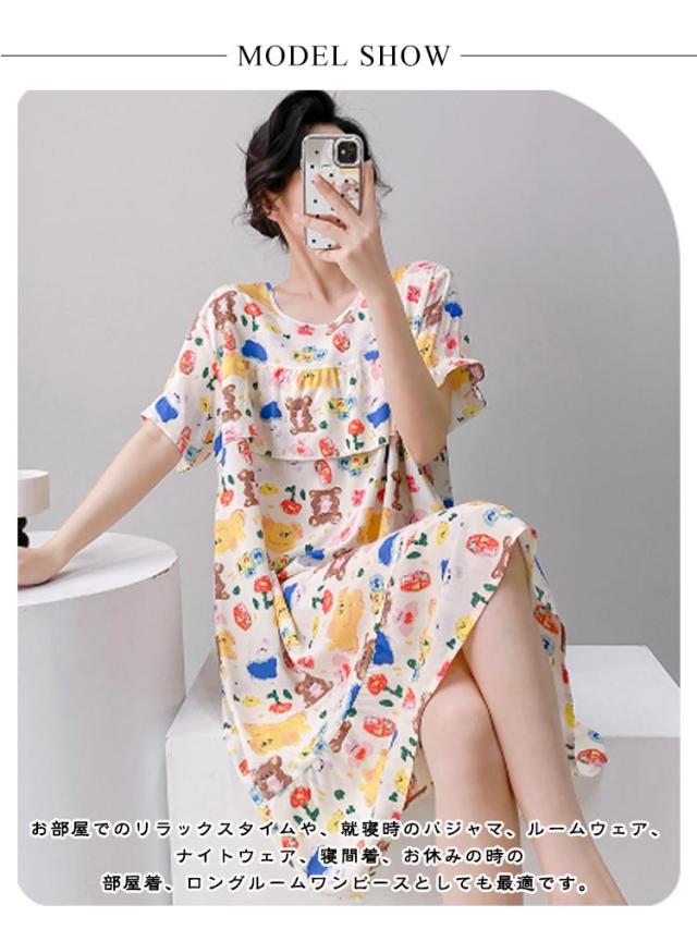 ロング丈 ネグリジェ パジャマ かわいい ルームウェア ワンピース ルームワンピース 半袖 ゆったり 薄手 涼しい 春夏 夏服 総柄 ルームウェア 透けない 大人 女性 可愛い 夏 体型カバー 寝間着 ラウンドネック ギフト プレゼント