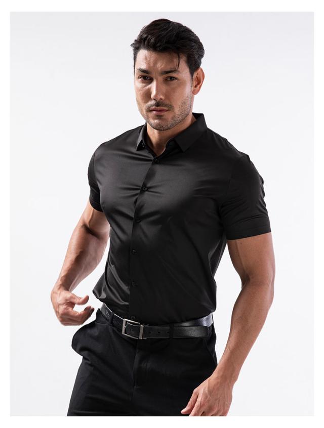 | ノーアイロンなのでお手入れも楽々メンズ半袖シャツ ほどよい光沢感があり、上品で清潔感のある表情が特徴です。 ストレッチ性あり、お仕事中もストレスフリーな着心地。お手入れ簡単にもうれしいポイント。 通勤や就職活動に、入学式や結婚式などにお勧め。 シンプルな無地カラーで、ボトムスとの組み合わせは自由、通勤コーデにも日常コーデにも似合う一枚。 | |