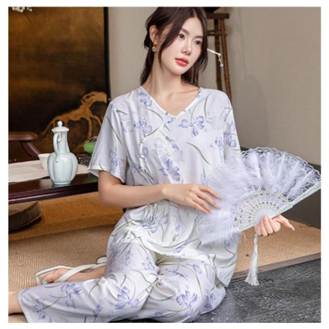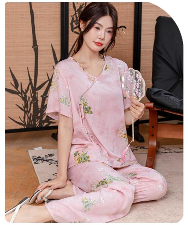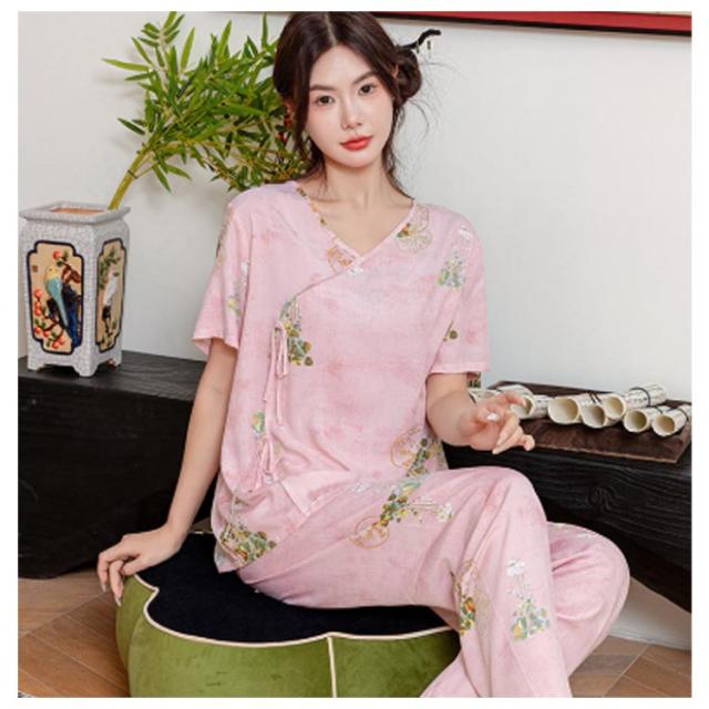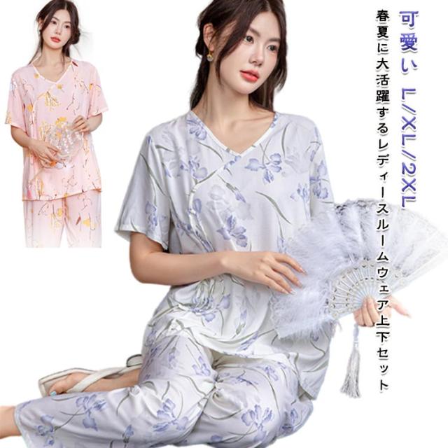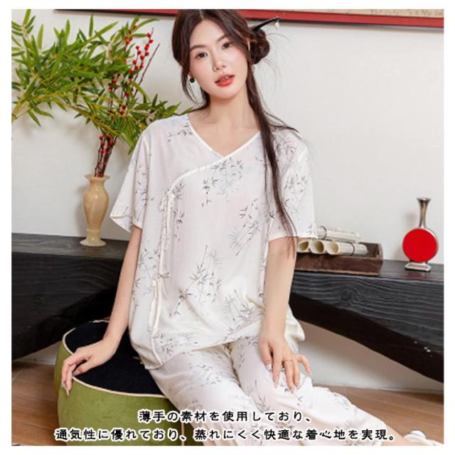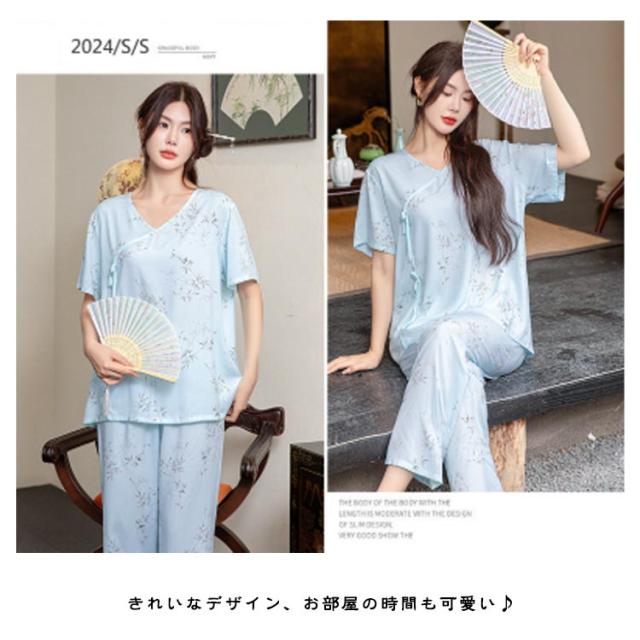 レディース パジャマ上下セット 半袖 体型カバー パジャマ ゆったり ルームウェア 可愛い チャイナ風 2点セット パジャマ上下セット 春秋 ロングパンツ 部屋着 寝巻き プルオーバー 薄手 ウエストゴム 旅行 入院 着替え かわいい ギフト プレゼント
