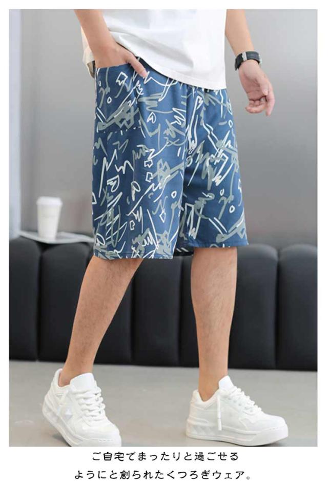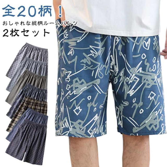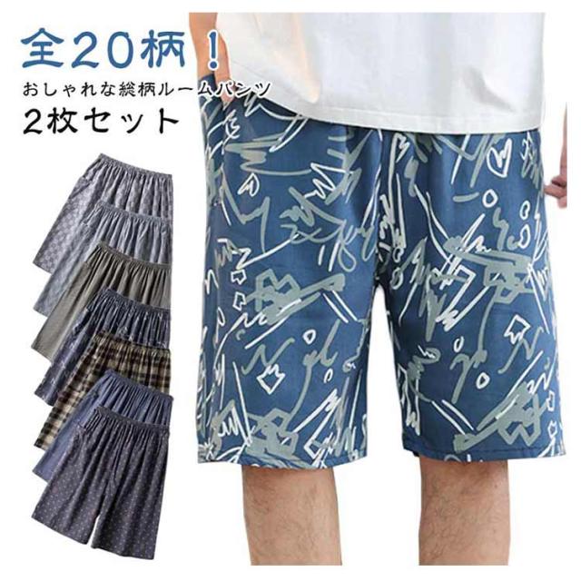 部屋着 ルームパンツ パンツ 夏 2枚セット 総柄 パジャマ おしゃれ 薄手 ショート丈 短パン 部屋着 ルームウエア ワンマイルウェア 涼しい メンズ 部屋着 カジュアル リラックスウェア 春夏 無ショートパンツ 大人 男性