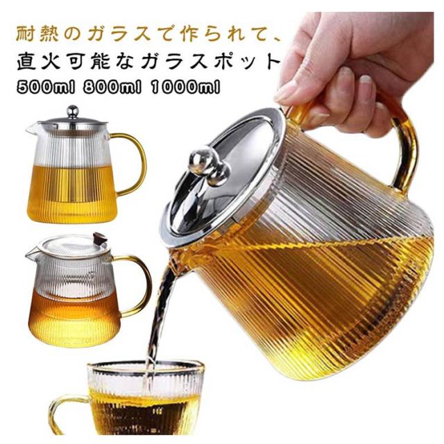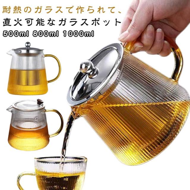 硝子 大容量 ティーポット 1000ml 茶こし付き クリア 耐熱ガラス 500ml ガラス製ポット 直火対応 ティーポット おしゃれ 紅茶ポット フルーツティー 花茶 工芸茶 ガラス急須 健康茶器 おしゃれ ガラスポット フルーツティー