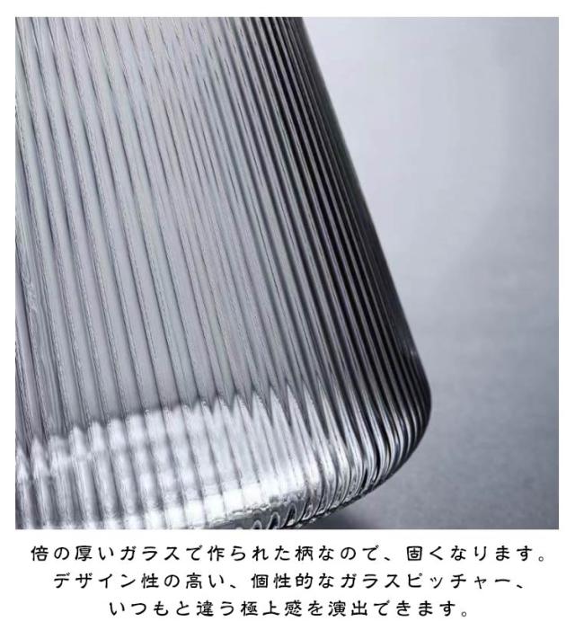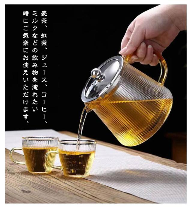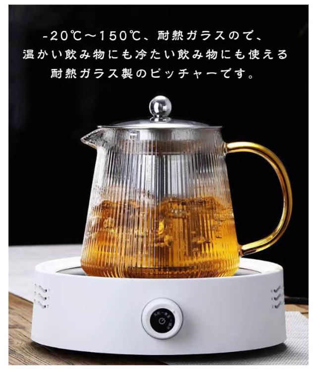 | 耐熱のガラスで作られて、直火可能なガラスポット ガラスポットは透明感が良くて、中身が見え、お茶の色合いが目で愉しめ、他のタイプのガラスよりよくきれいです。 倍の厚いガラスで作られた柄なので、固くなります。デザイン性の高い、個性的なガラスピッチャー、いつもと違う極上感を演出できます。 麦茶、紅茶、ジュース、コーヒー、ミルクなどの飲み物を淹れたい時にご気楽にお使えいただけます。 -20℃〜150℃、耐熱ガラスので、温かい飲み物にも冷たい飲み物にも使える耐熱ガラス製のピッチャーです。 | |