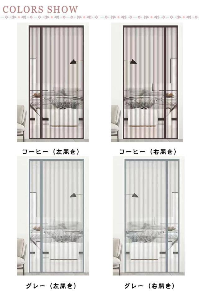 | 【マグネット式網戸】高密度のメッシュ、より良い透光性があります。強力的なマグネット付き出入り楽で安全にお使いいただけます。 ドア枠の枠内寸法は取り付けられる網戸の寸法に繋がりますので、ご購入前に必ずドア枠の枠内寸法をご確認ください。 【効果的な虫よけ・省エネ・通気】高密度のメッシュで、家で新鮮な空気を自由に呼吸できるように、自然で爽やかな風を通し、優れた光の透過性を持ちます。玄関、勝手口、ベランダの片開きドアに取り付けられますので、蚊・ハエなどの害虫の侵入を防止でき、他の蚊取り用品やハエ取り用品を買う必要はありません。夏の時、エアコンを付ける必要なく節電もでき、家でも気持ちよく涼しい夏をお楽しみに過ごせます。【自動的に閉まる】両手を解放して、荷物の運びなどにも便利で、ストレスが解消され、子供とペットでも簡単に通り抜けます。これからの出入りは楽になります! 【取付簡単・適用場所】工具不要!付属のマジックテープだけでドア枠に固定するだけで完了です。女性と老人の方でも簡単に取り付けが出来ます。使わない季節には取り外し、折りたたんでコンパクトに収納できます。玄関ドア、引き戸、キッチンドア、部屋、リビング、アパート、開き戸、勝手口やベランダなど色々な場所に取り付け可能! | |